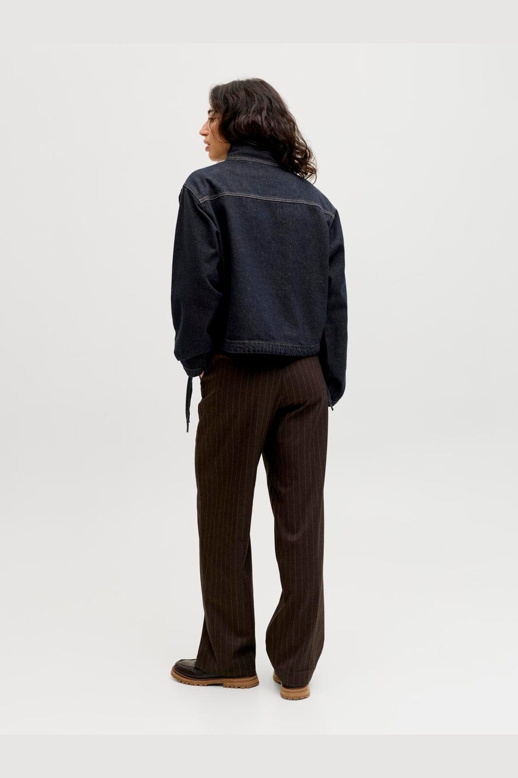 Denim-pullover van Jjxx in donkerblauwe denim met hoge kraag en halve knoopsluiting. Het heeft een loose fit-pasvorm en een borstzak aan de voorkant. Koord in de taille biedt de mogelijkheid om de pasvorm aan te passen.