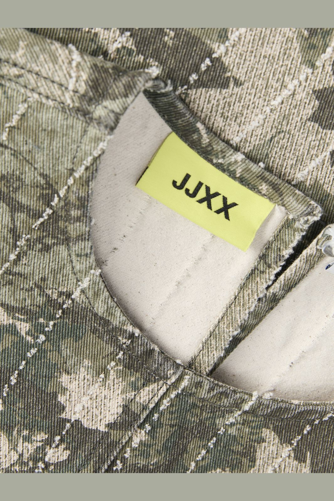 Mouwloze top van JJXX in groen met een camouflageachtig patroon in groene en beige tinten. De top heeft een ronde hals en een regular fit-pasvorm.