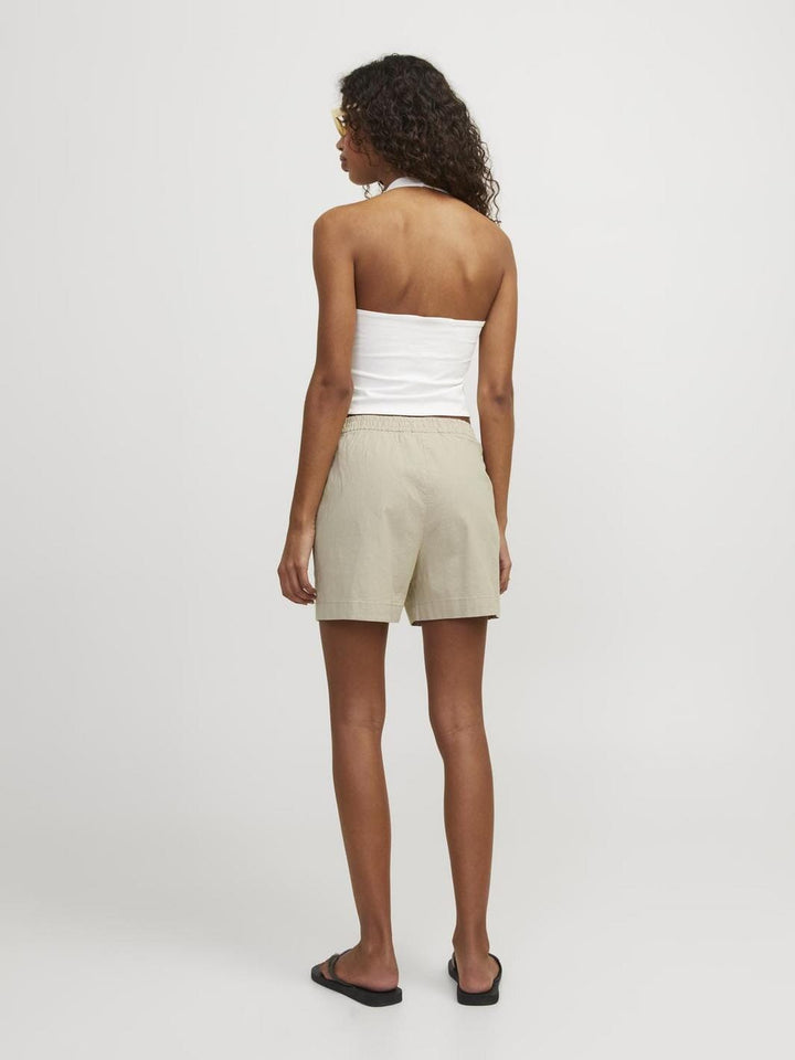 Lichtbeige shorts van Jjxx met hoge taille en loose fit. De shorts hebben een elastische tailleband en zakken, waardoor ze gemakkelijk te dragen zijn in het dagelijks leven.