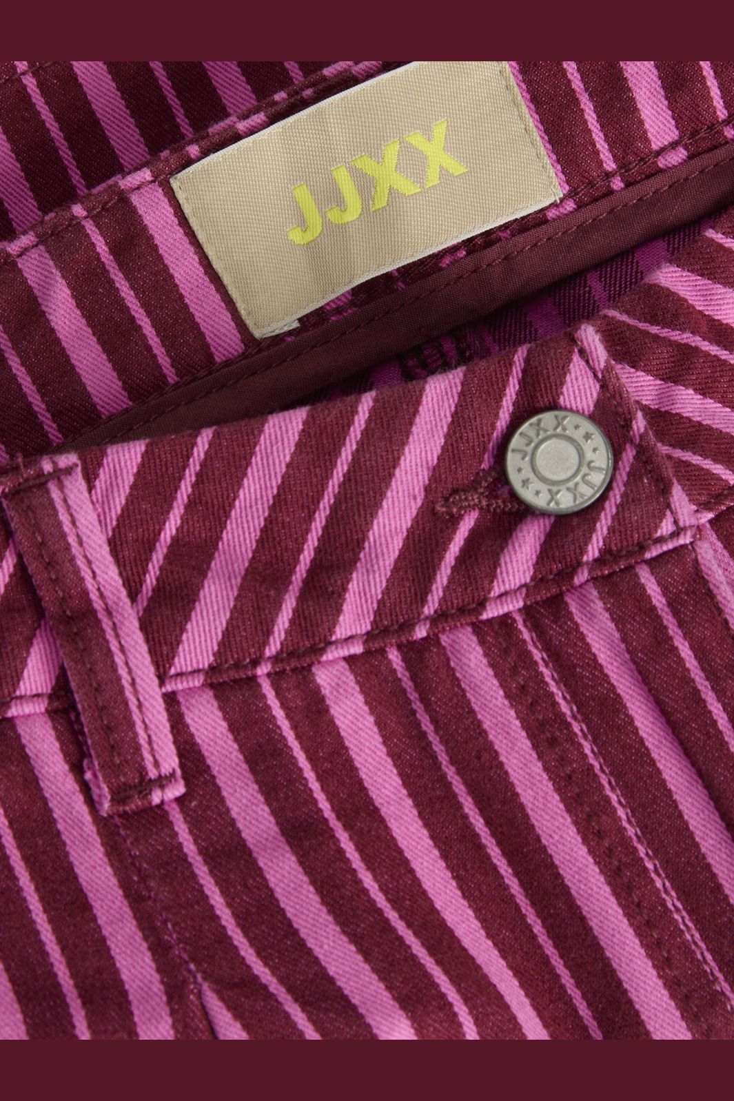 Gestreepte shorts van Jjxx in roze en bordeaux tinten. De shorts hebben een gestreept patroon en een losse pasvorm met een middelhoge taille.