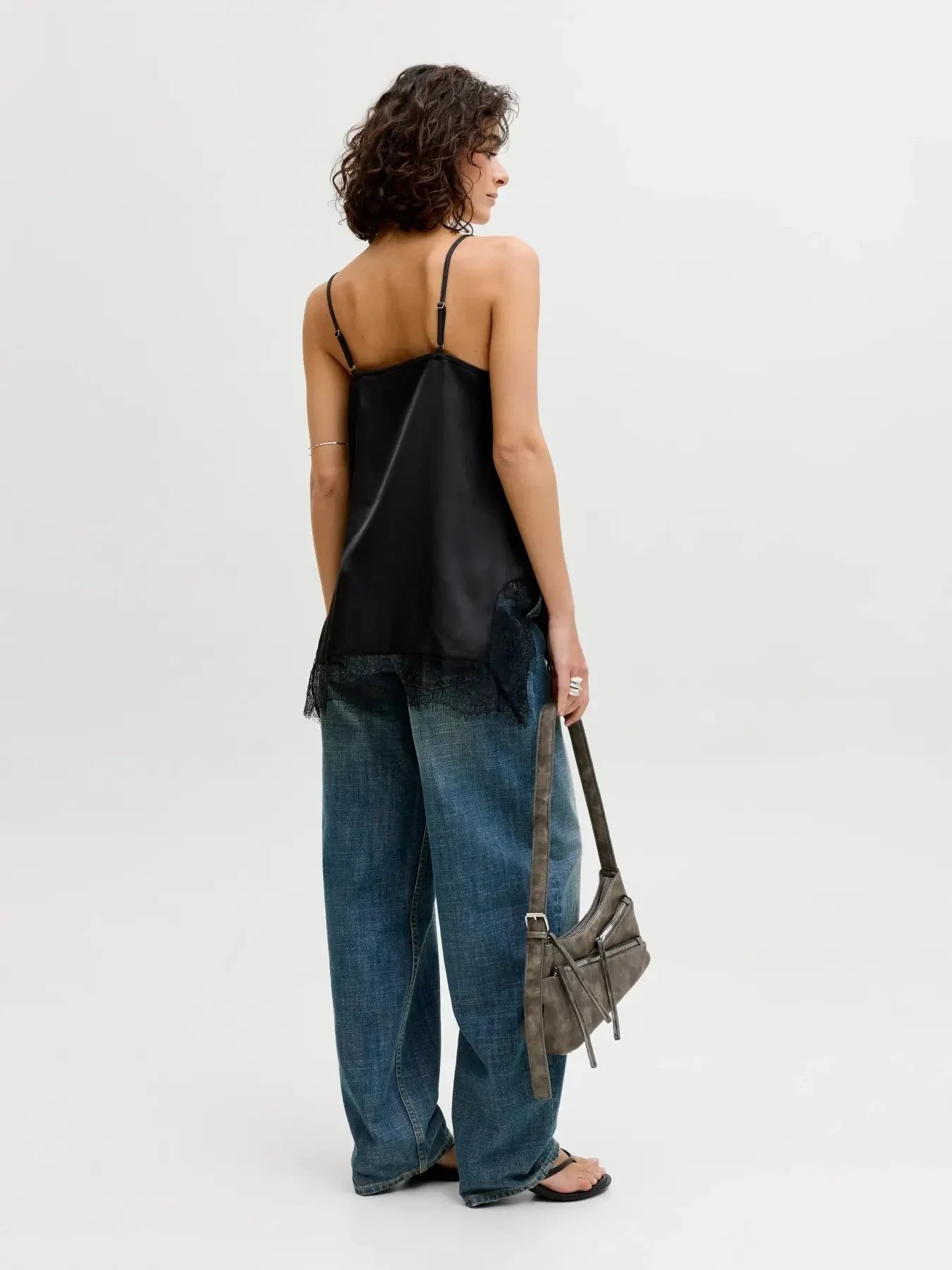 Jjxx Jxvima Singlet Satin Lace Long Top Kleur: 5076719 Black
