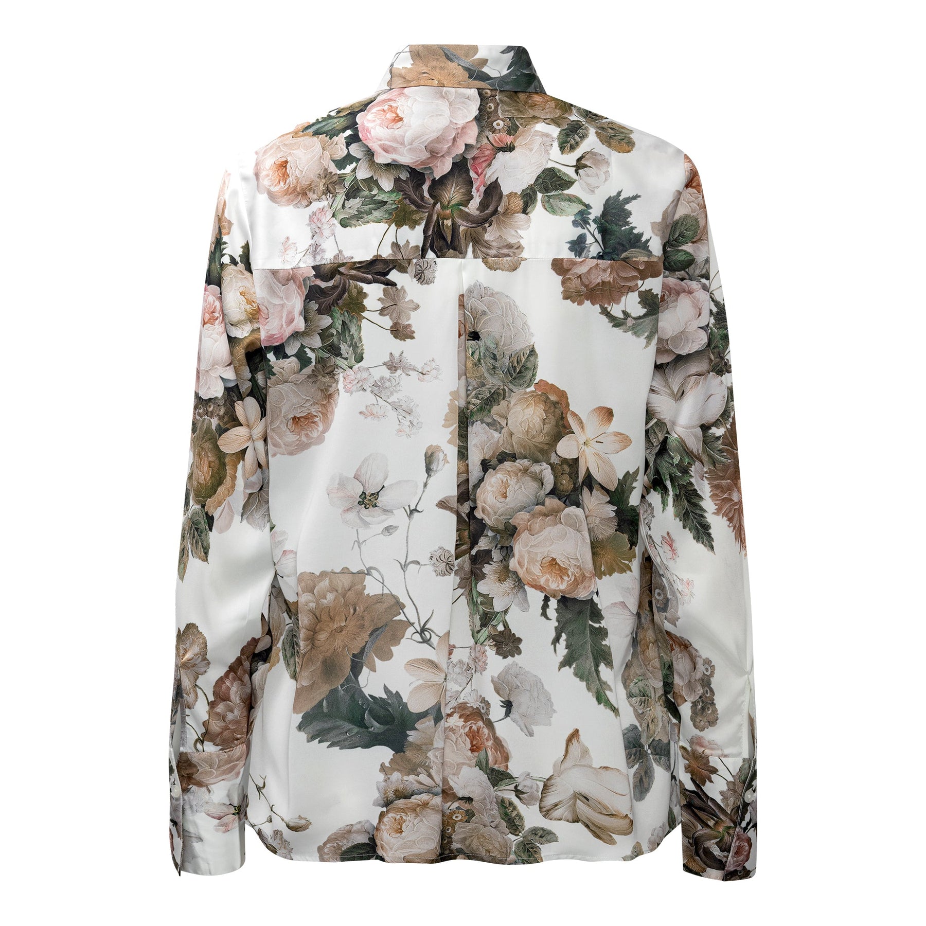 Blouse van Karmamia met bloemenprint in tinten roze, beige en groen. De blouse heeft een licht oversized pasvorm in boyfriend-stijl.