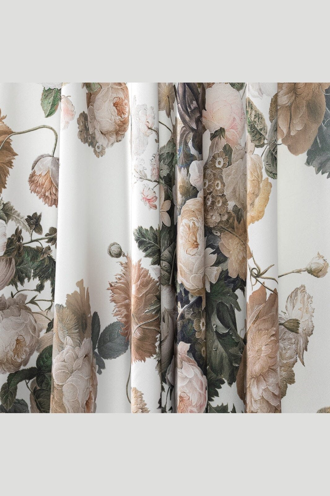 Lange rok van Karmamia met een bloemenprint in lichte crème- en rozetinten op een witte ondergrond. De rok heeft een losse pasvorm en enkellengte.