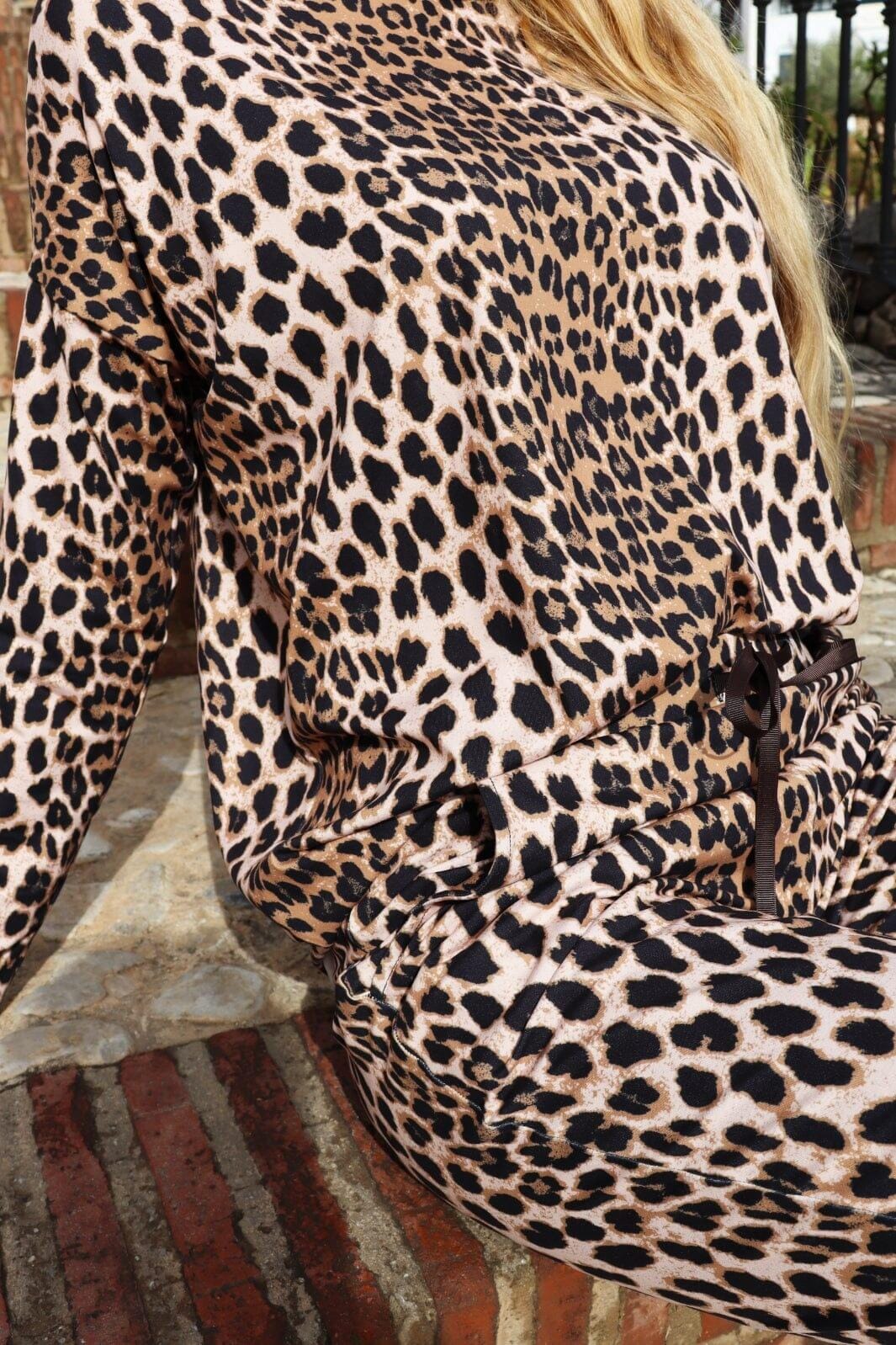 Blouse van Liberte met luipaardprint in bruine en zwarte tinten. Het heeft lange mouwen en een ronde halslijn met een strikdetail.