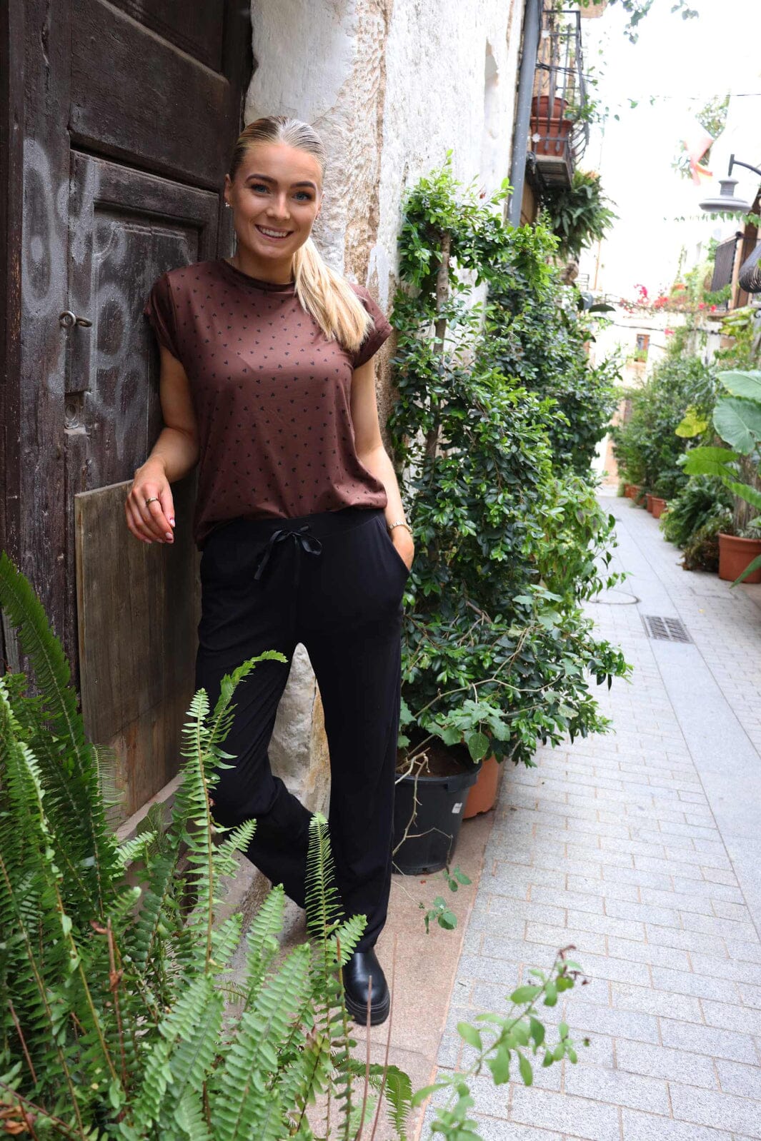 - Bruin met zwart hartprint