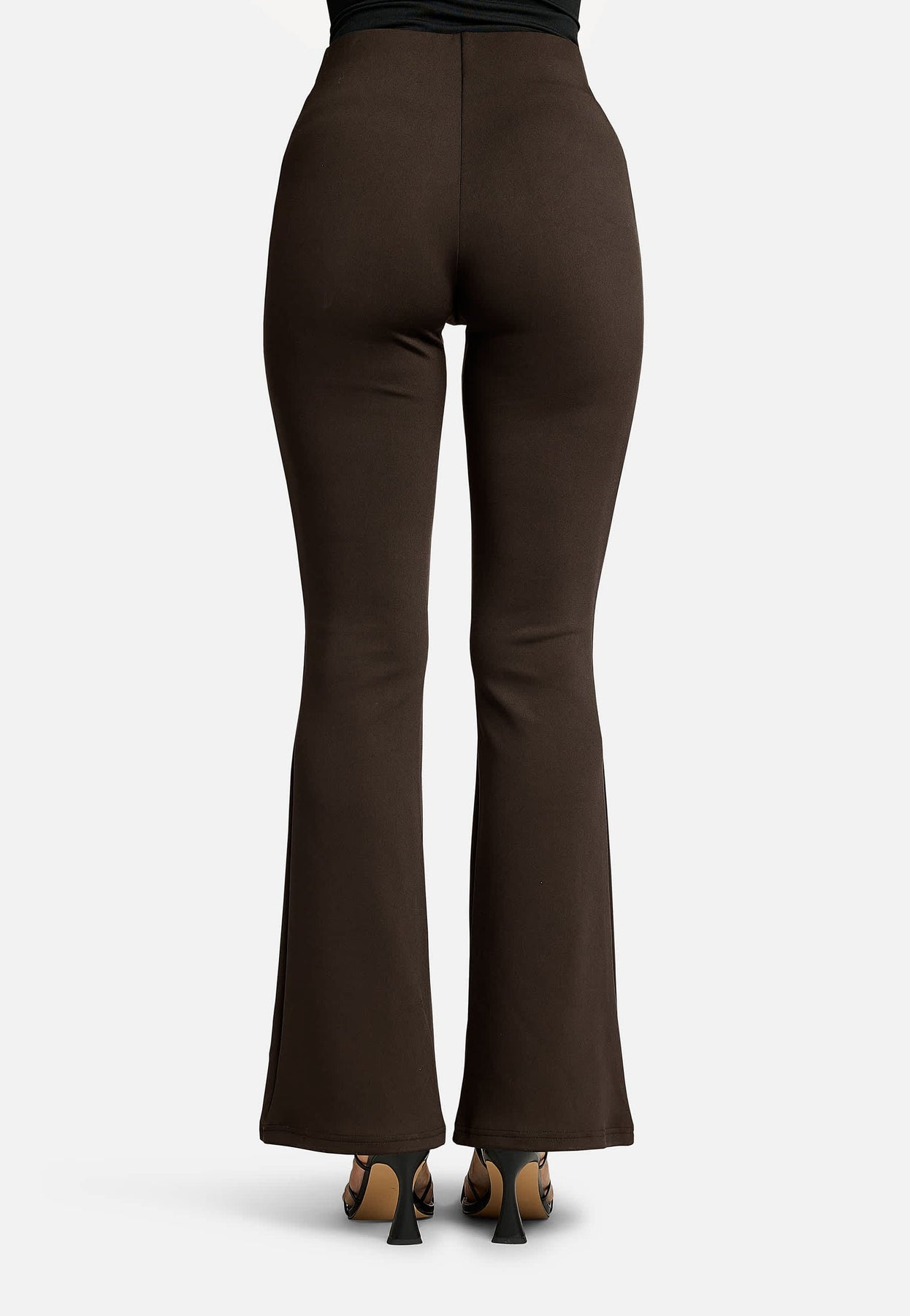 Bruine flared broek van Liberte, gemaakt van een mix van viscose, polyester en spandex. De broek heeft een warme bruine kleur en een flared pasvorm.