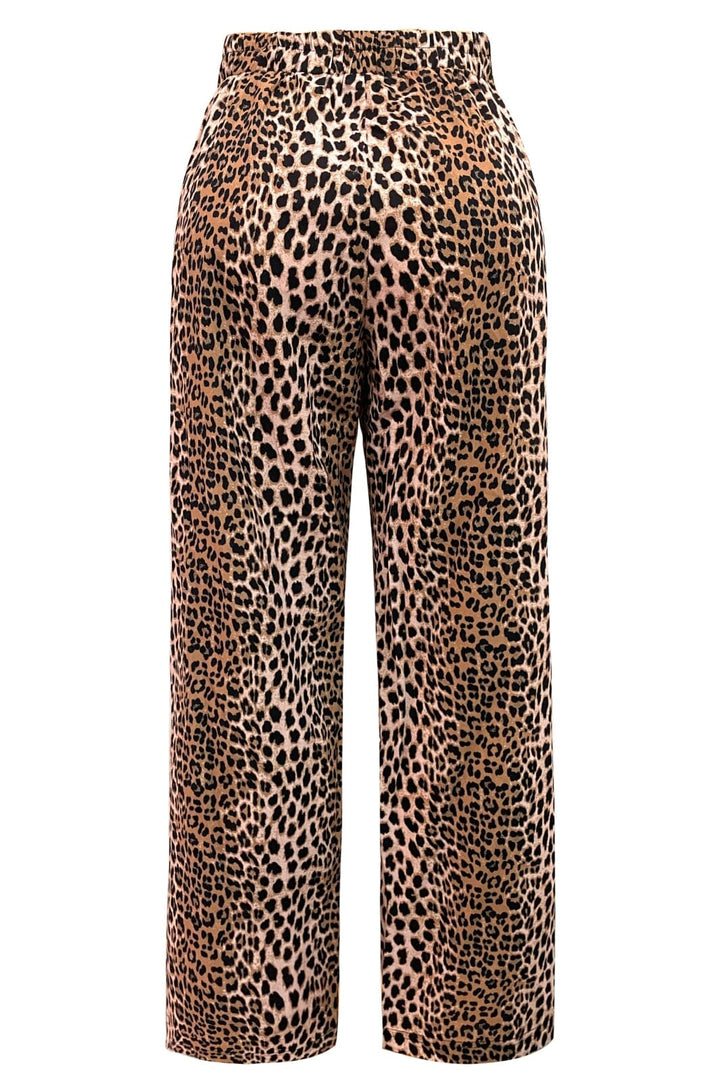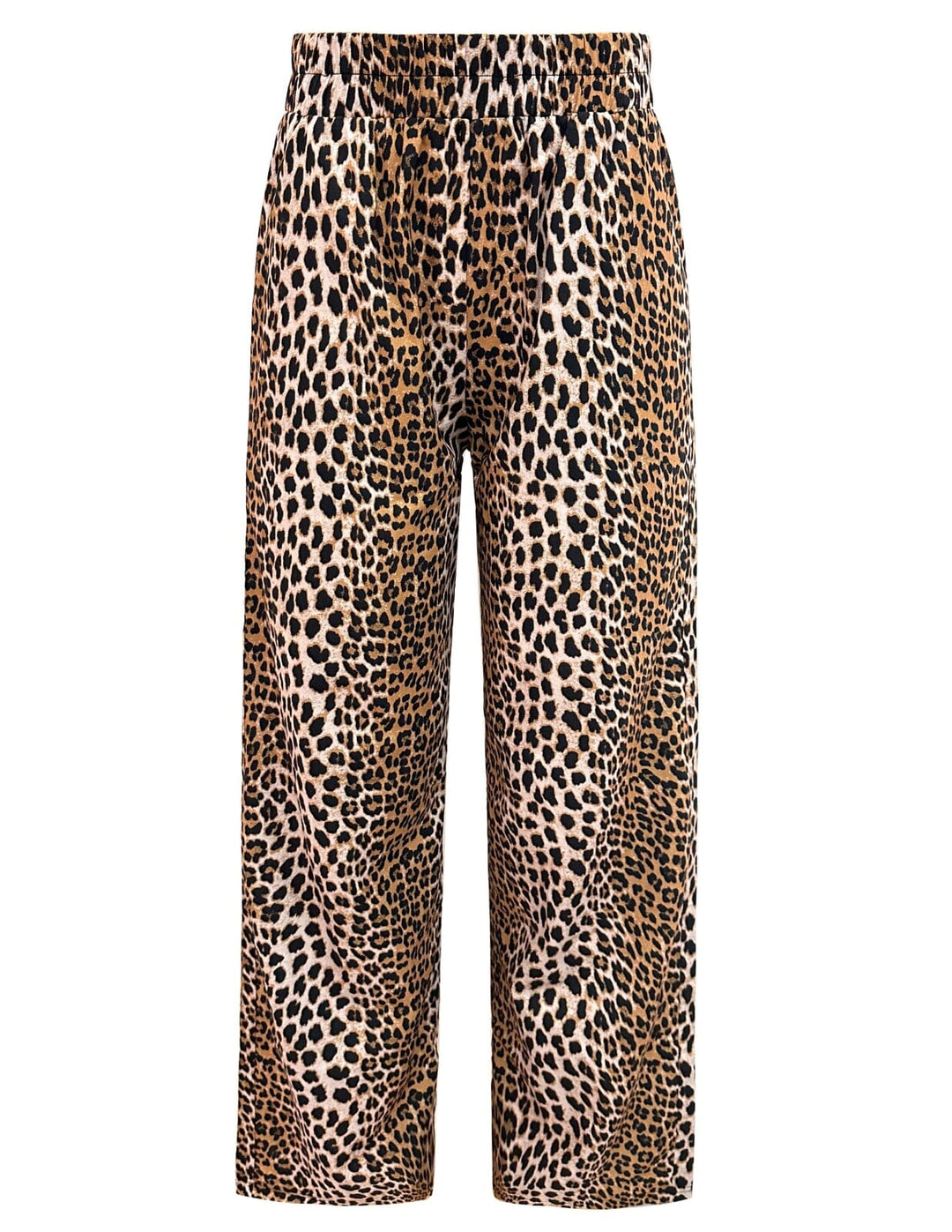 Broeken van Liberte met luipaardprint in bruine en beige tinten. Ze hebben een regular fit met elastiek in de taille en enkel lengte. Ruffle-details geven de broeken een vrouwelijke uitstraling.