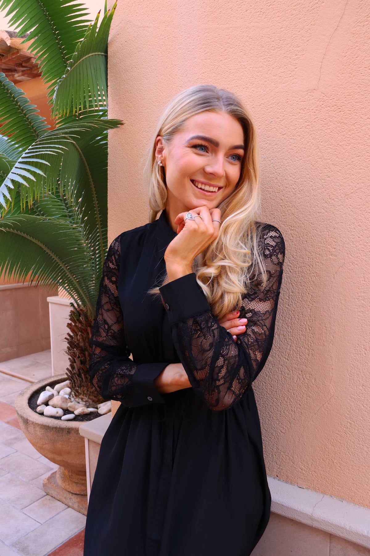 - Lange mouwen met kantdetails