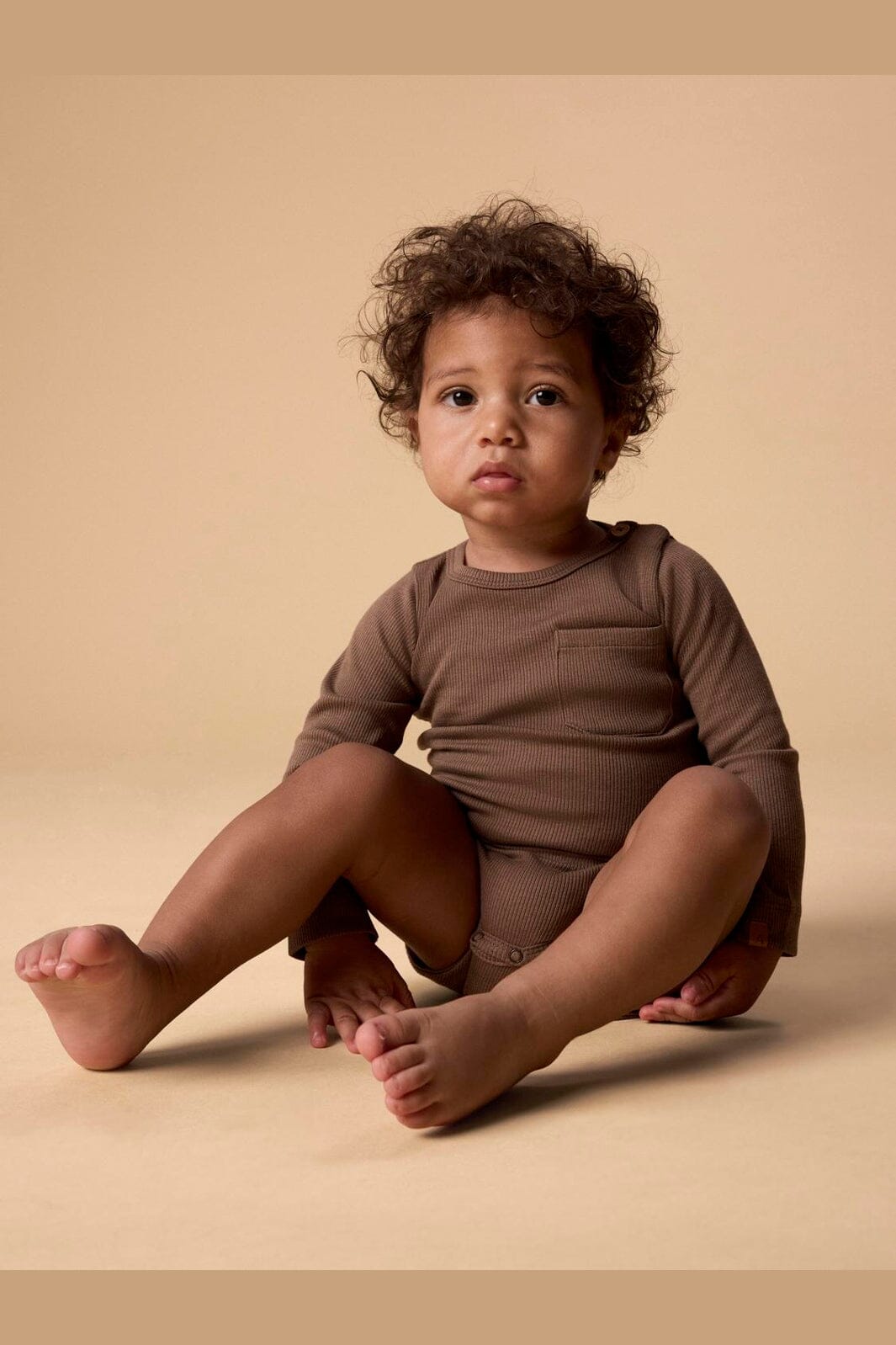 Een bruine body van Lil' Atelier gemaakt van een mix van biologisch katoen en lyocell. De body heeft een slim fit-pasvorm en lange mouwen.