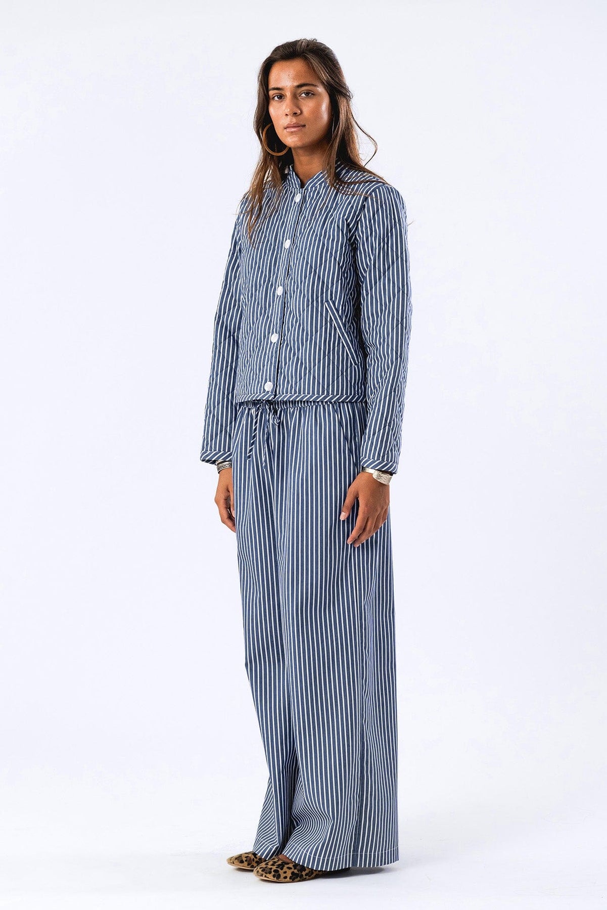 Gestreept jack van Lollys Laundry in blauw en wit. Het jack heeft decoratieve stiksels en een losse pasvorm met zowel knopen als een trekkoord.
