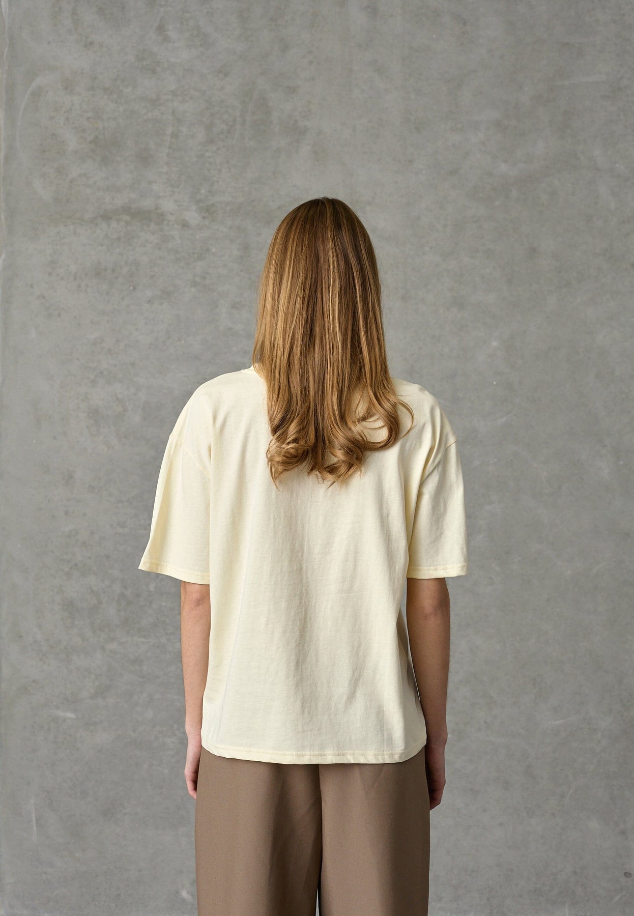 Een geel T-shirt van Love & Divine, gemaakt van 100% katoen. Het T-shirt heeft een oversized pasvorm en 3/4-mouwen in de kleur Butter.
