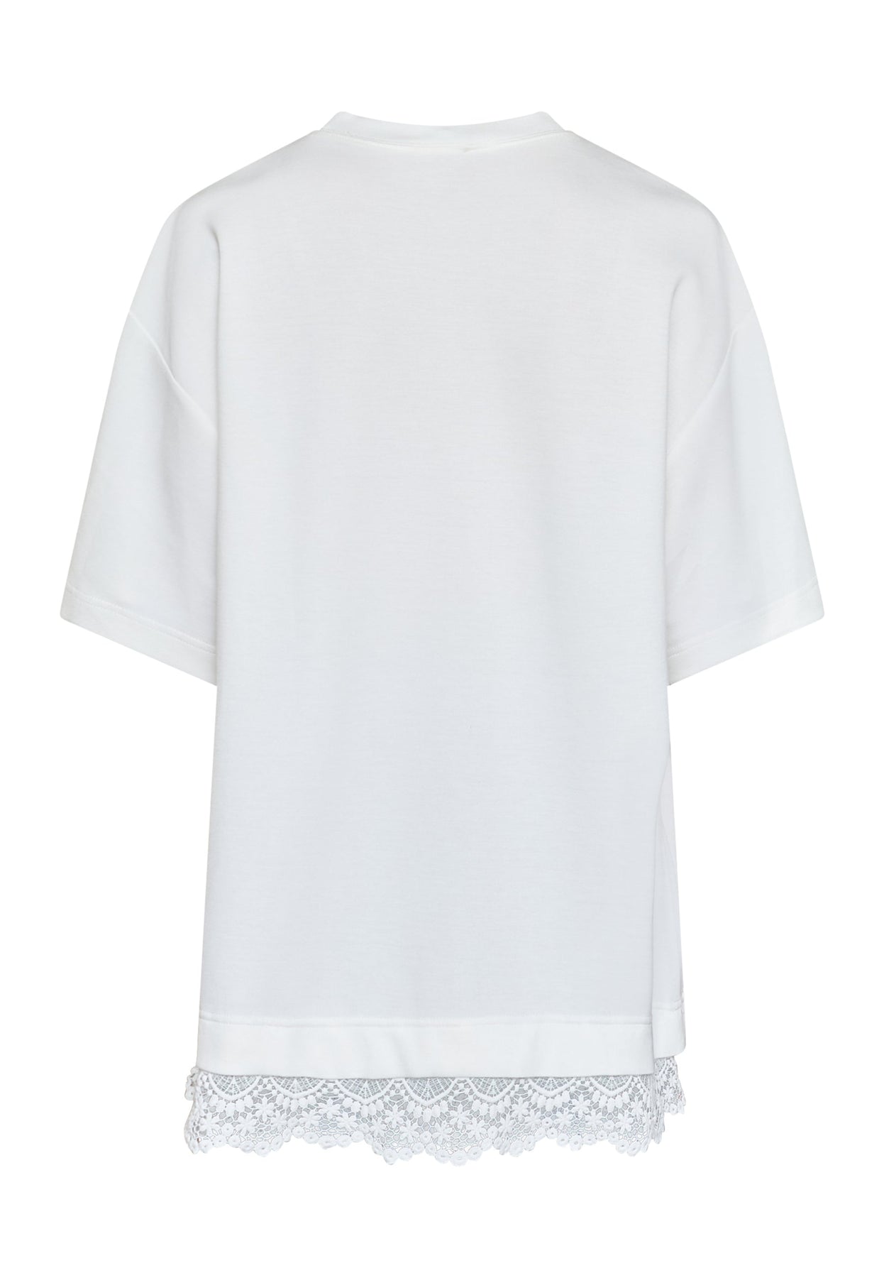 Wit T-shirt van Love & Divine met een opgestikte kanten rand langs de onderkant. Het heeft een oversized pasvorm met korte mouwen.
