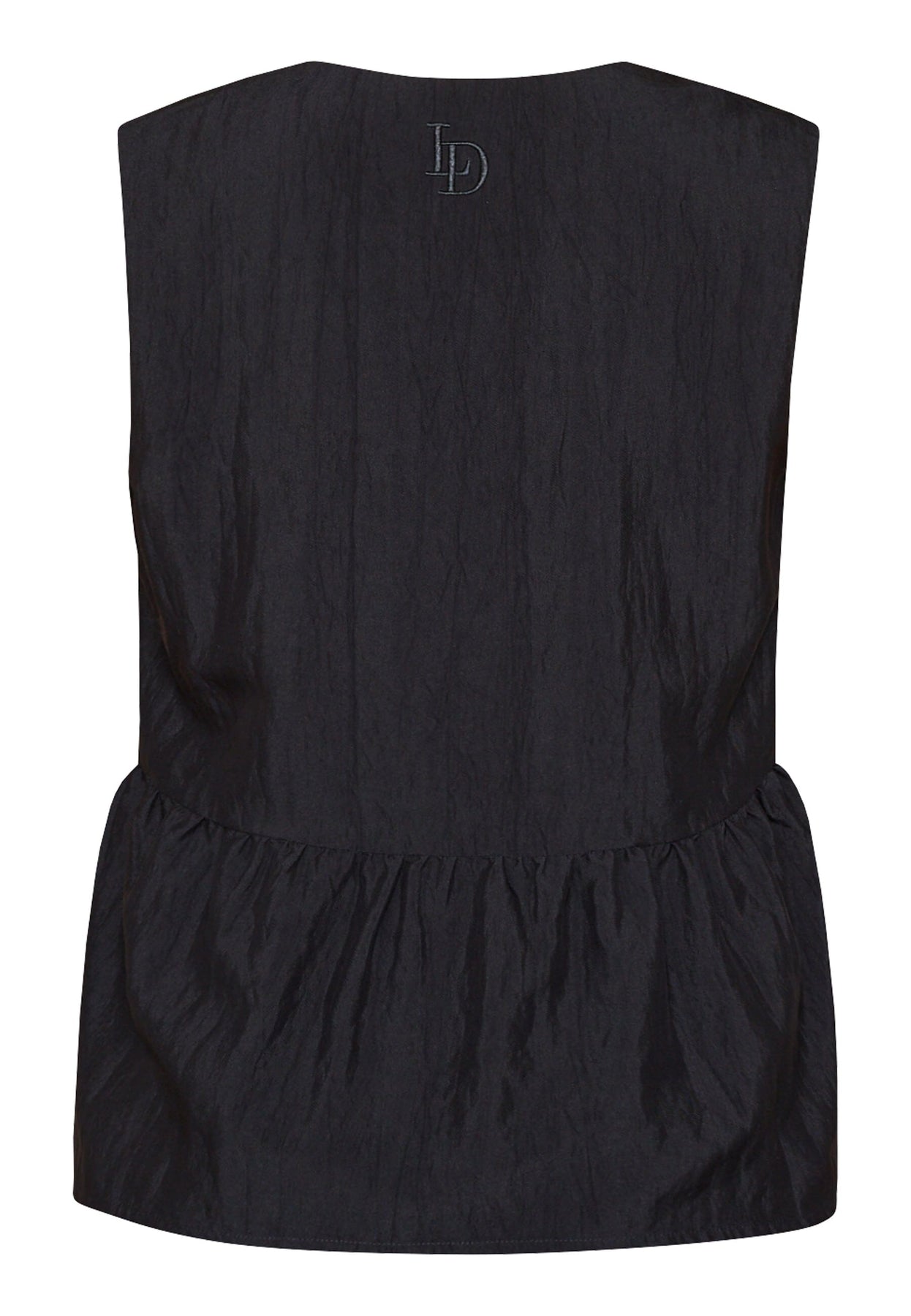 Zwarte mouwloze top van Love & Divine met V-hals en plooien. De top heeft een knoopsluiting en is gemaakt in een effen zwart ontwerp.