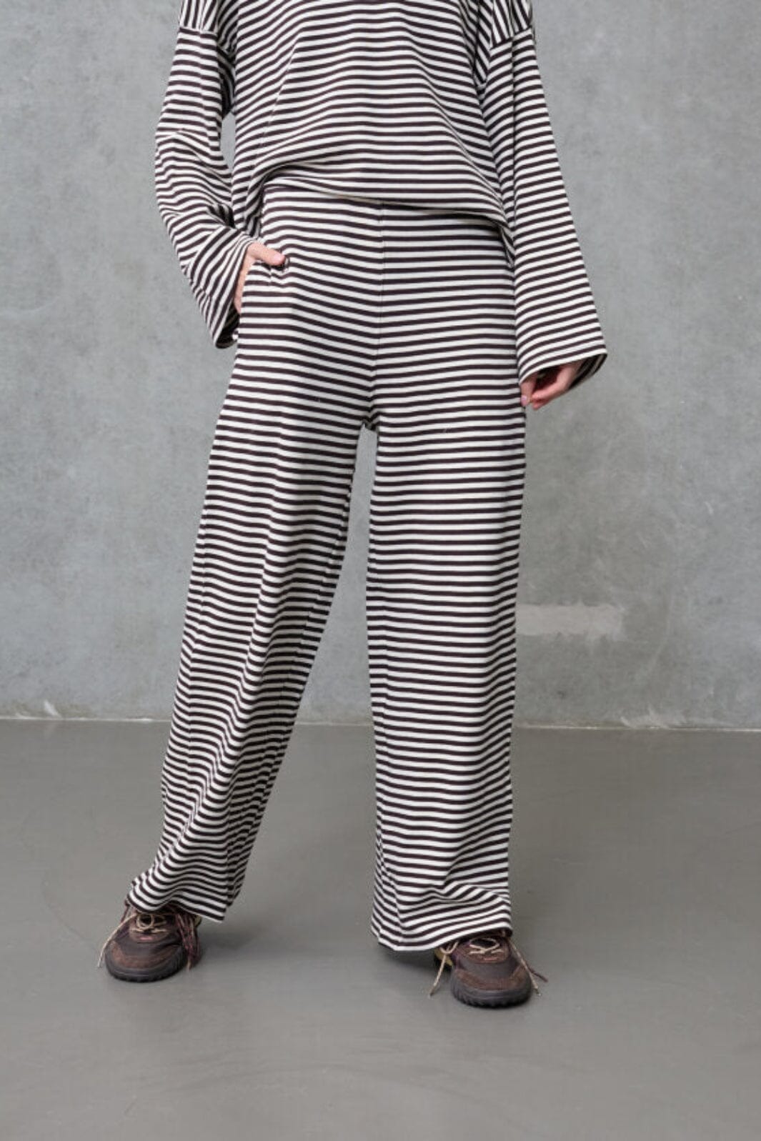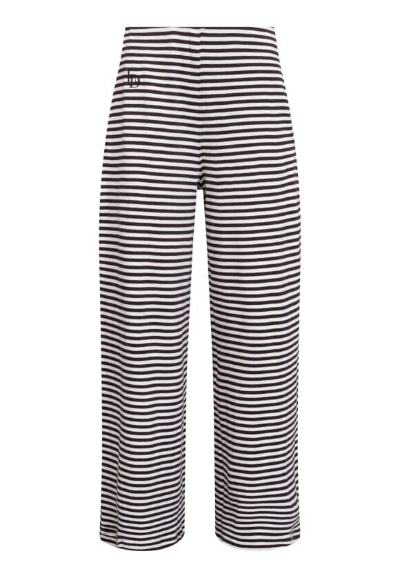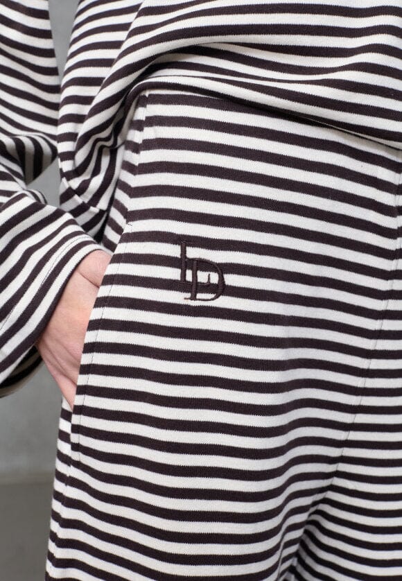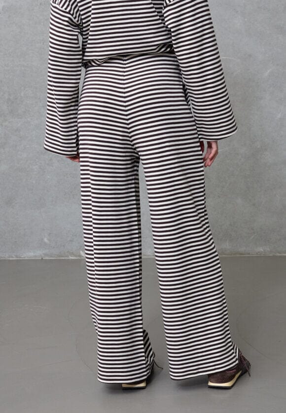 Gestreepte broek van Love & Divine in crème en bruin. De broek is gemaakt van 100% katoen en heeft een losse pasvorm met vloerlang model.