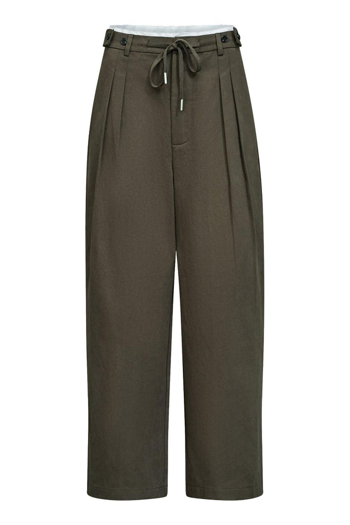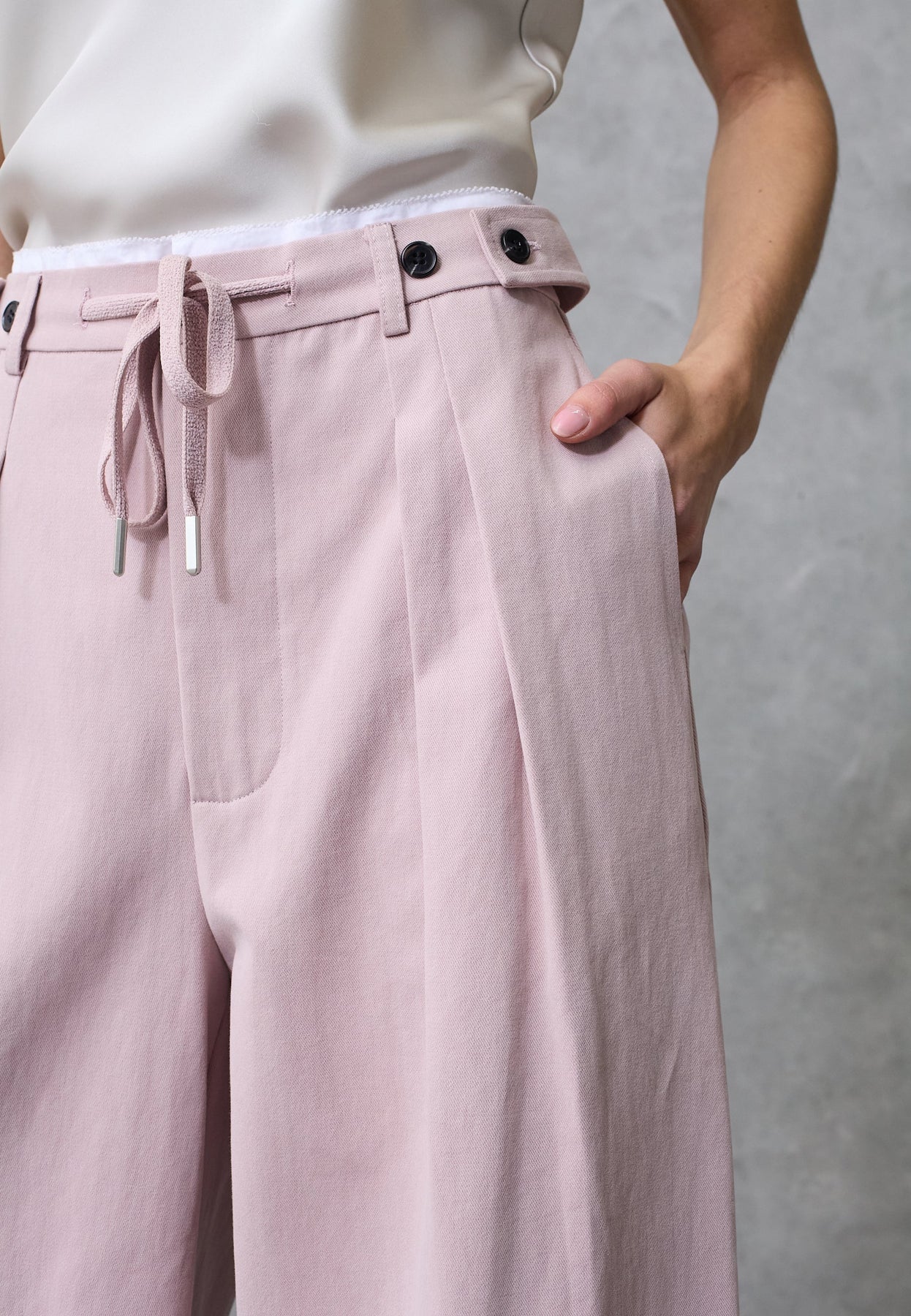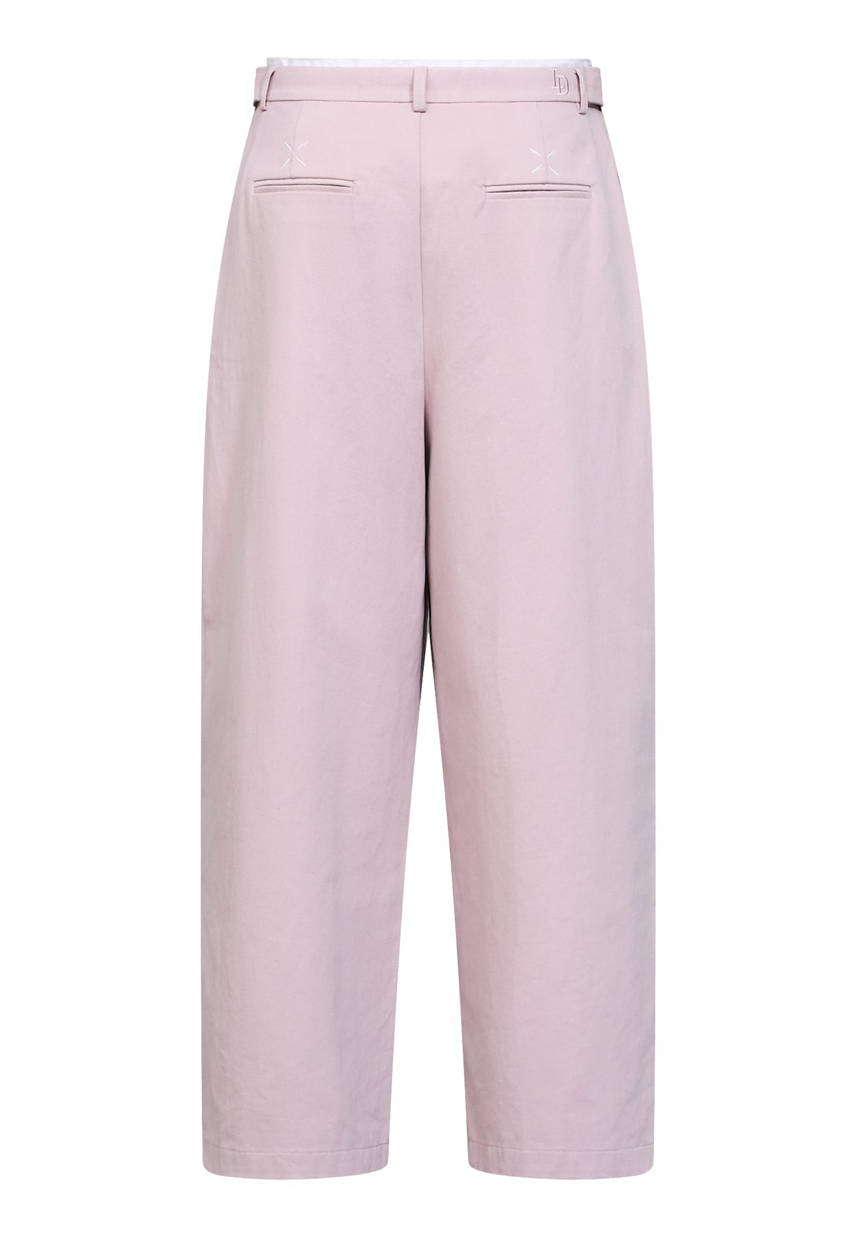 Paarse broek van Love & Divine, gemaakt van 100% katoen. De broek heeft wijde pijpen, een hoge taille en een losse pasvorm met borduursel en strikdetails.