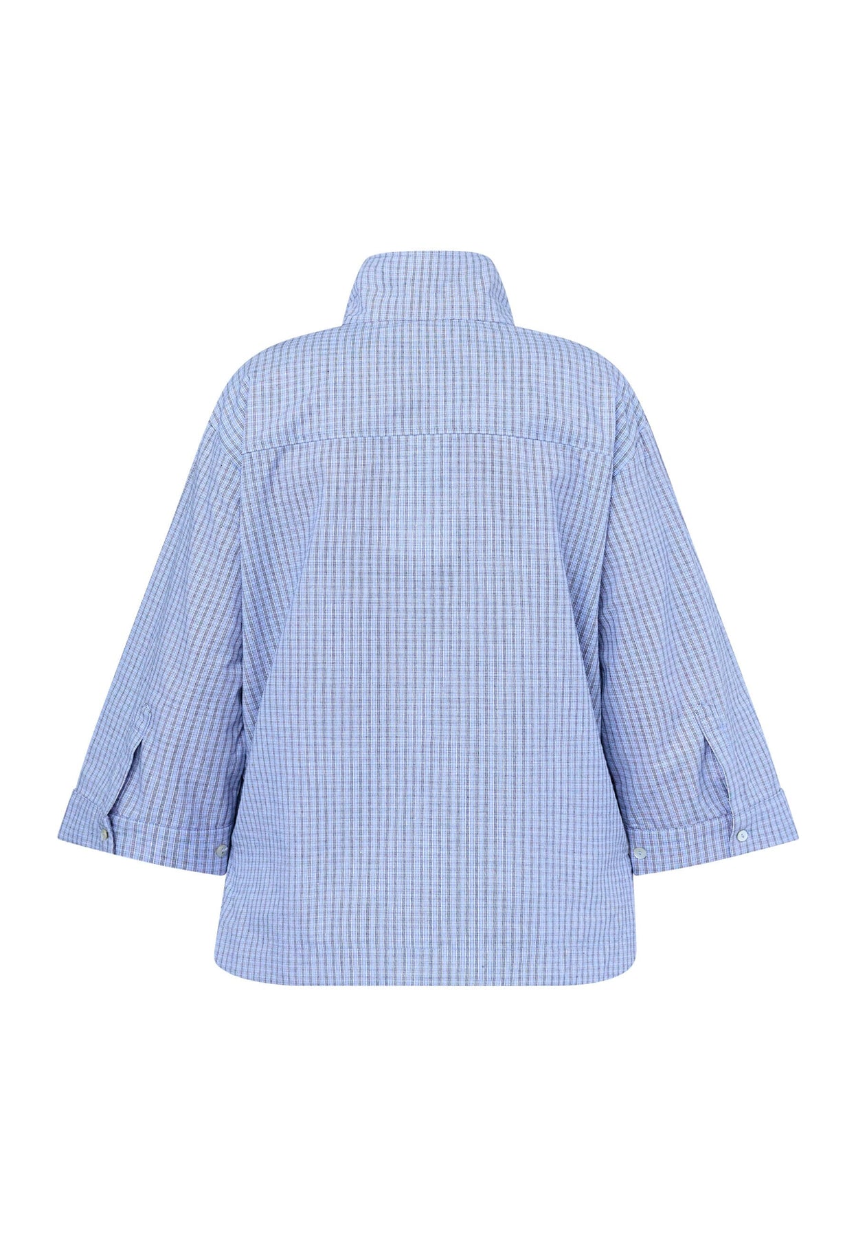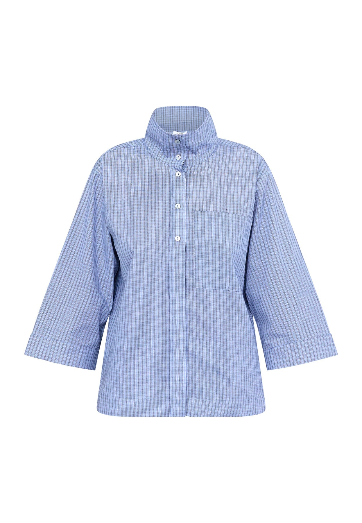 Blauw geruite blouse van Love & Divine, gemaakt van 100% katoen. De blouse heeft een kraag en een knoopsluiting aan de voorkant met een geruit patroon in blauwtinten.