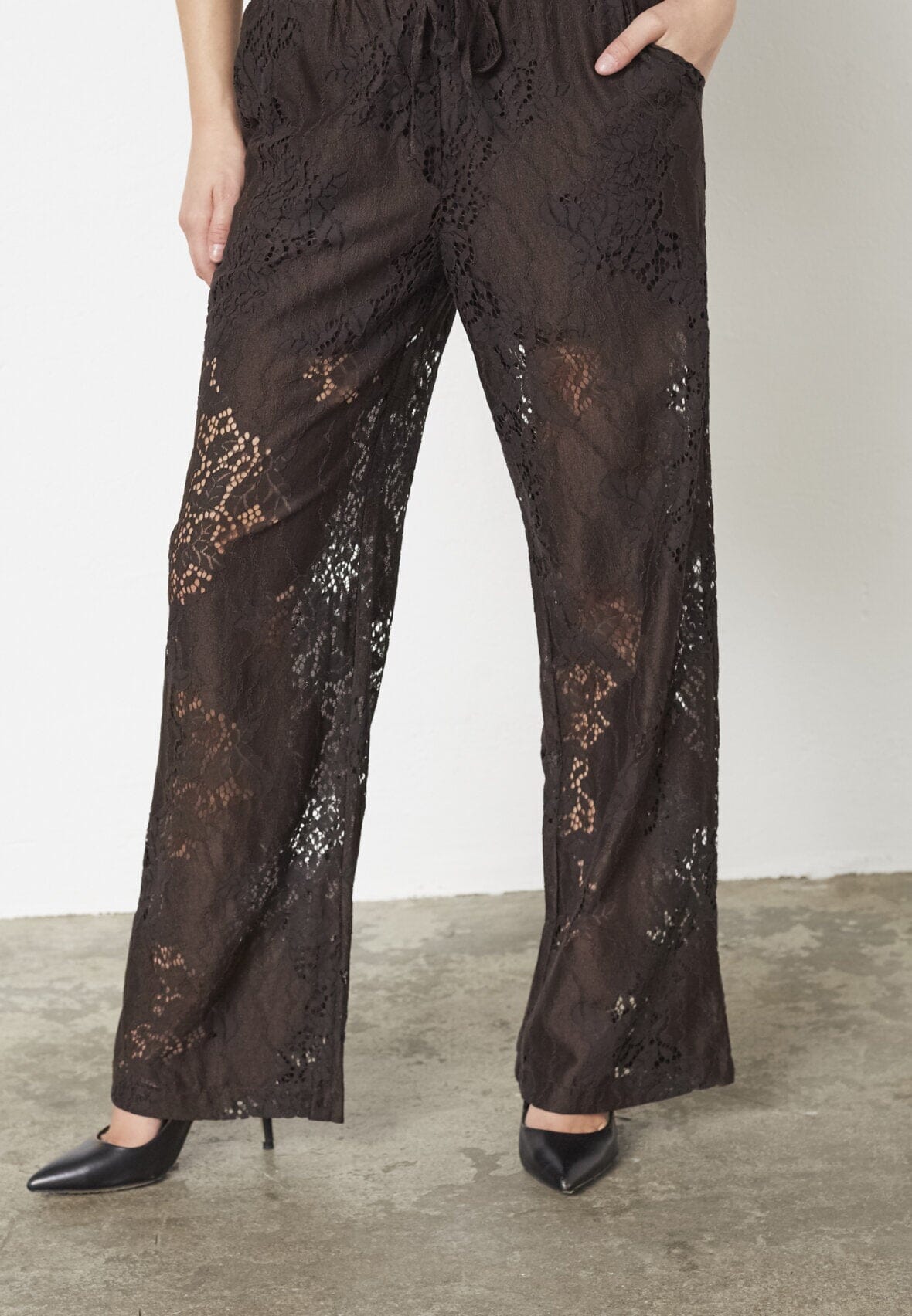 Donker chocoladebruine bekleding van Love & Divine met een mix van polyamide en katoen. De stof heeft een praktische combinatie van duurzaamheid en comfort.