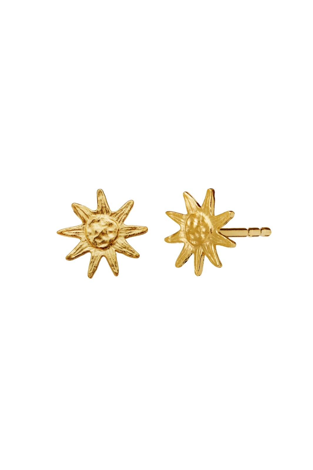 Gouden oorbellen van Maanesten met een ontwerp van zon en maan. Ze zijn gemaakt van gerecycled sterling zilver met een laagje van 18 karaat goud.