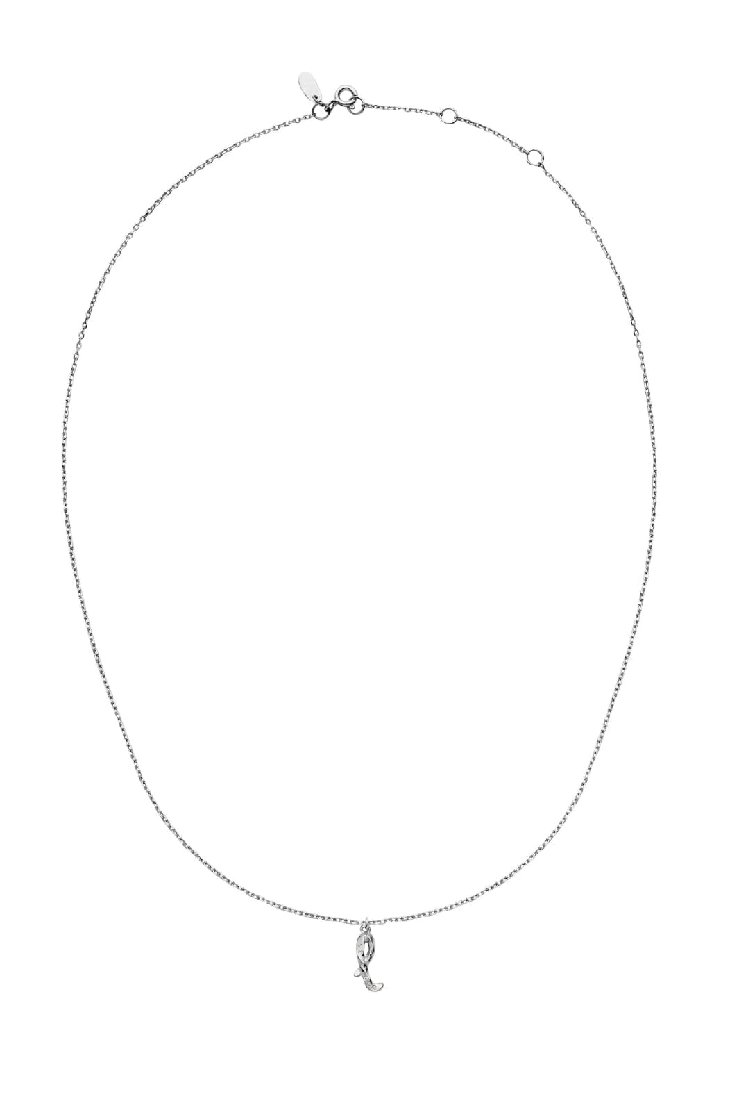 Zilveren ketting van Maanesten met een golvende L-letter als hanger. De hanger heeft kleine stenen in het ontwerp ingelegd, wat een persoonlijke touch geeft.
