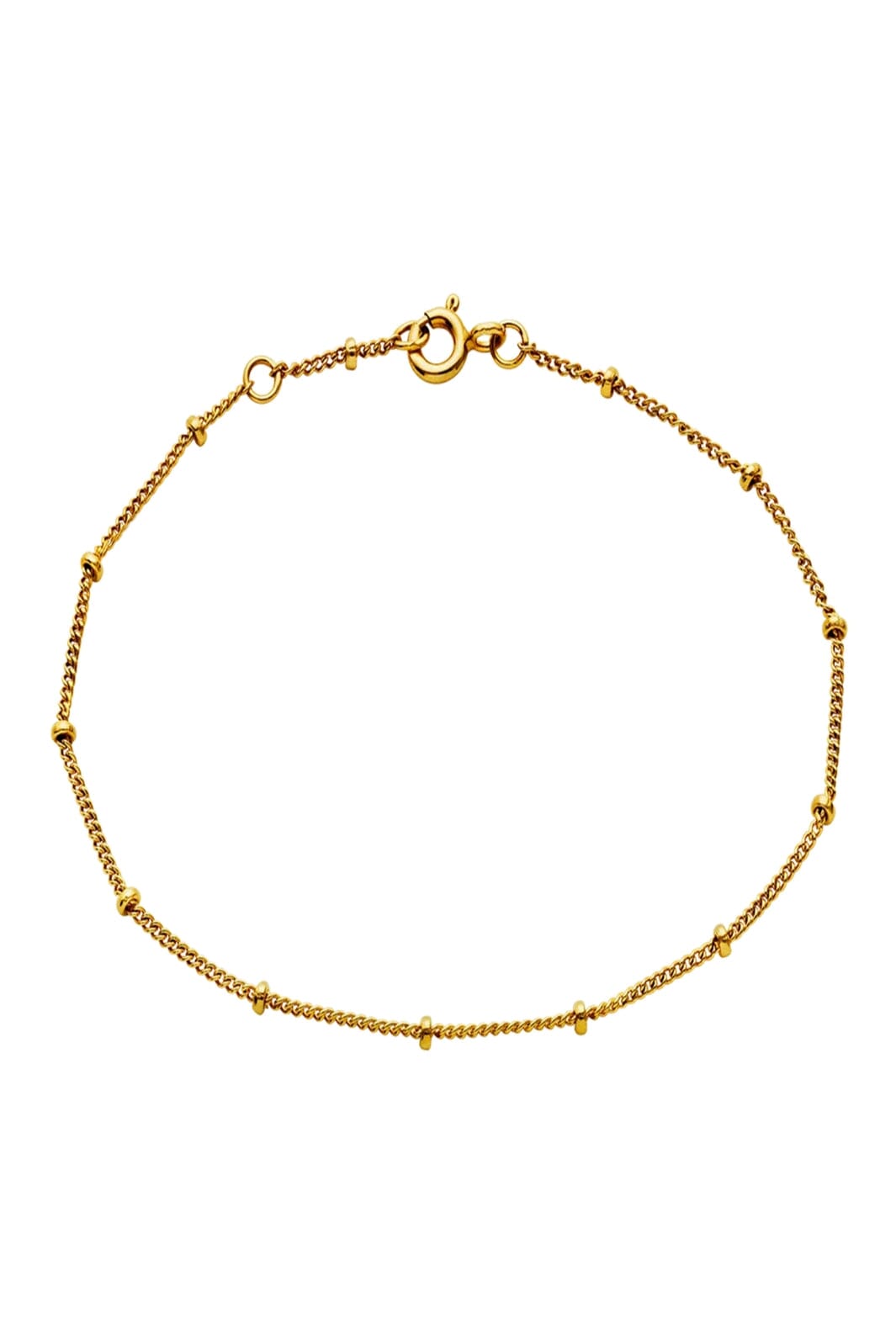 Goudgeplateerd armband van Maanesten met kleine, ronde parels gelijkmatig verdeeld over de ketting. Gemaakt van gerecycled sterling zilver met een 18-karaats goudlaag.