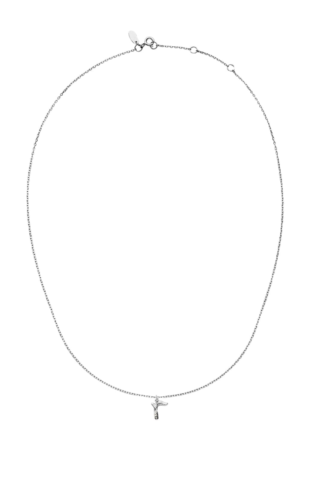 Zilveren ketting van Maanesten met R-letterhanger. De ketting is gemaakt van gerecycled sterling zilver met kleine glanzende details in de hanger.