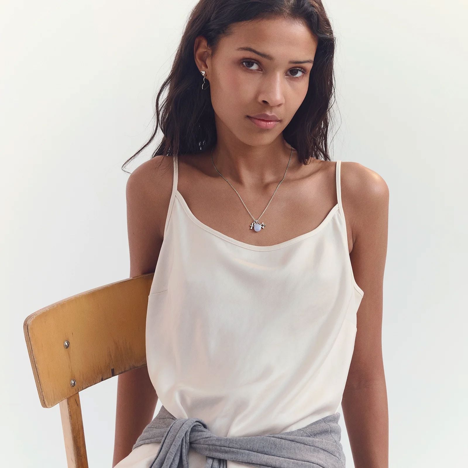 Een ketting van Maanesten in zilver, gemaakt van gerecycled sterlingzilver. De ketting heeft kleine, gelijkmatige schakels en kan solo of met een hanger worden gedragen.