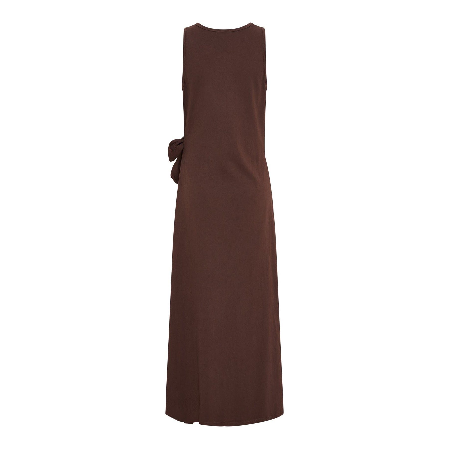 Bruine vloerlange jurk van Marta Du Chateau met een losse pasvorm. De jurk heeft een ronde halslijn en een knoopdetail aan de voorkant.