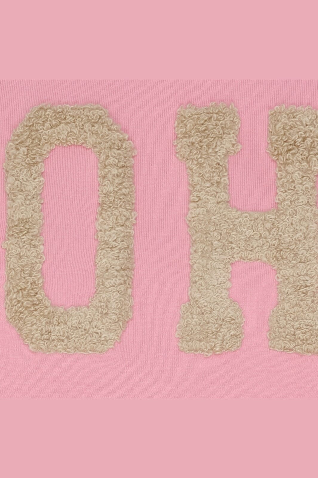Roze T-shirt van Marta Du Chateau met SOHO-borduurwerk op de voorkant. De T-shirt heeft korte mouwen en een ronde halslijn.