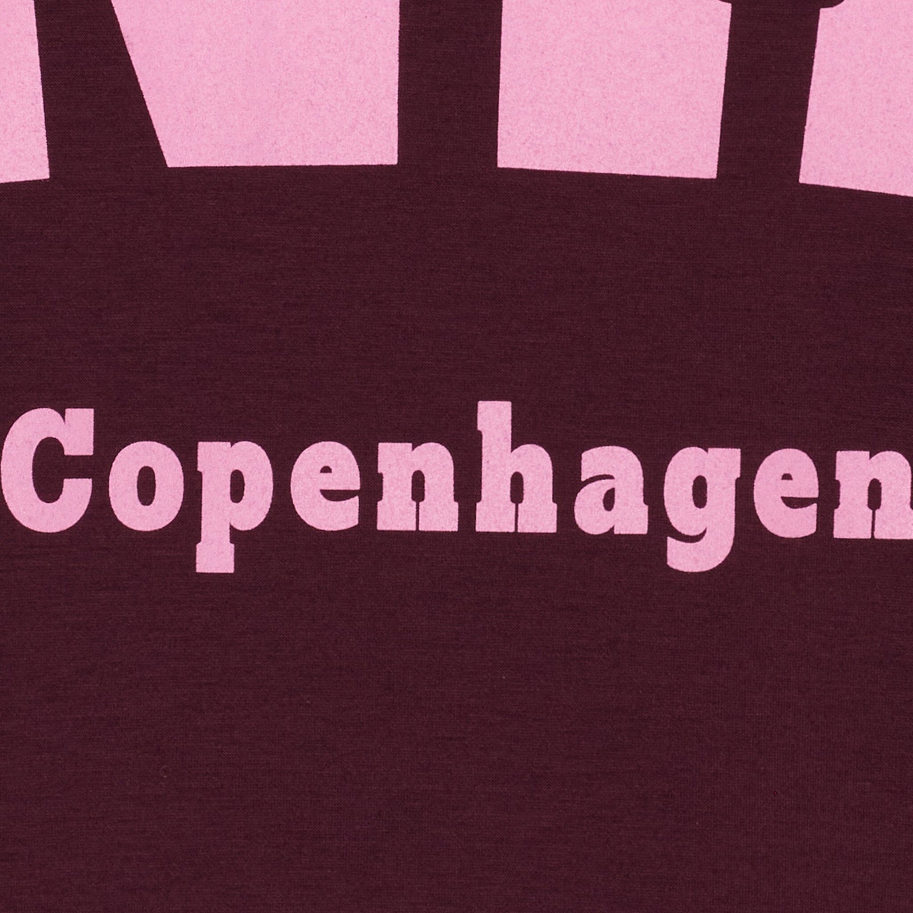 Bordeaux sweatshirt van Marta Du Chateau met roze letters. Het heeft een oversized pasvorm en een ronde halslijn, waardoor het geschikt is voor zowel thuisgebruik als ontspannen momenten.