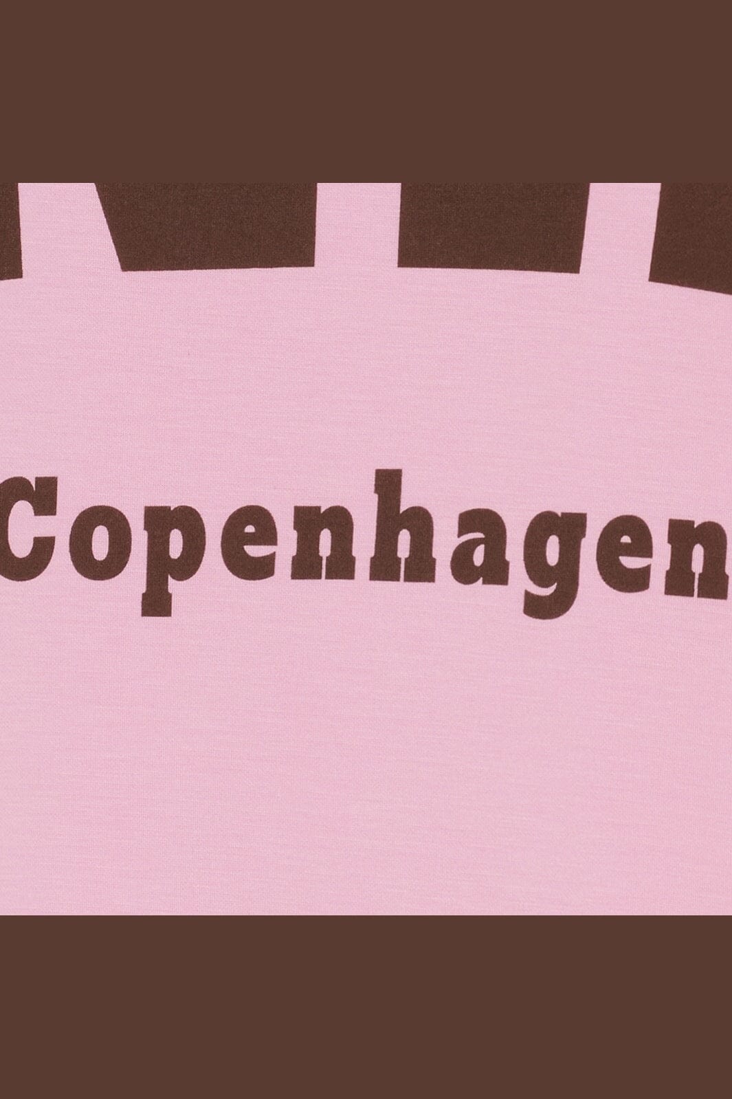 Roze sweatshirt van Marta Du Chateau met zwarte Copenhagen-print op de borst en mouwen. Het heeft een losse pasvorm en een ronde halslijn.