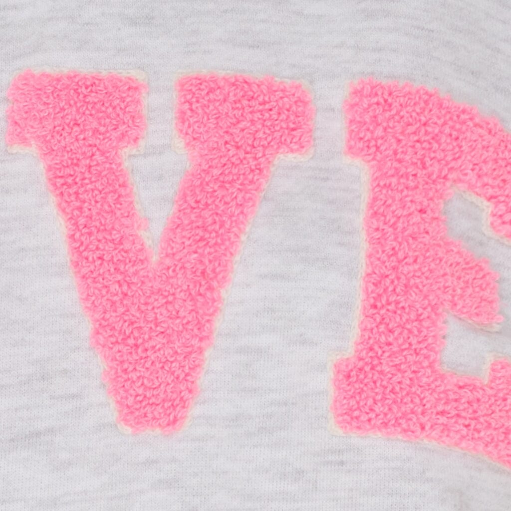 Een lichtgrijze sweatshirt van Marta Du Chateau met roze LOVE-borduurwerk op de voorkant. De sweatshirt heeft een gemêleerd oppervlak en een ontspannen pasvorm.