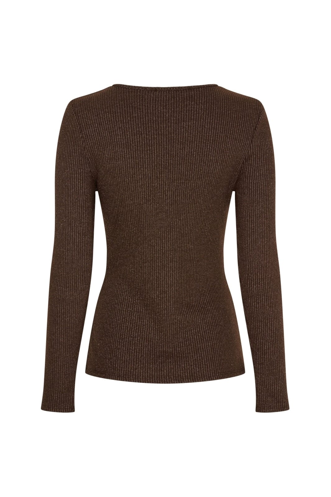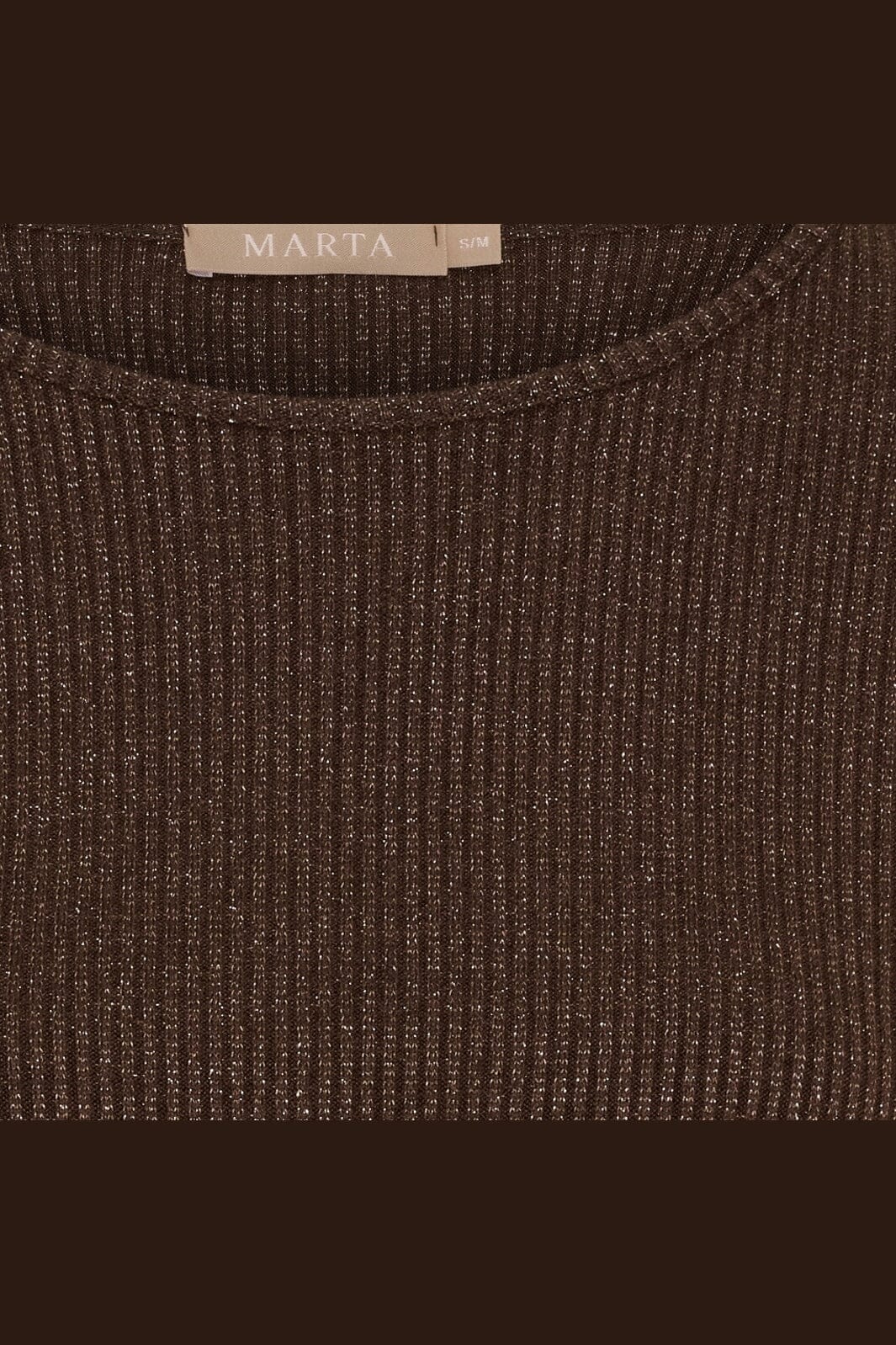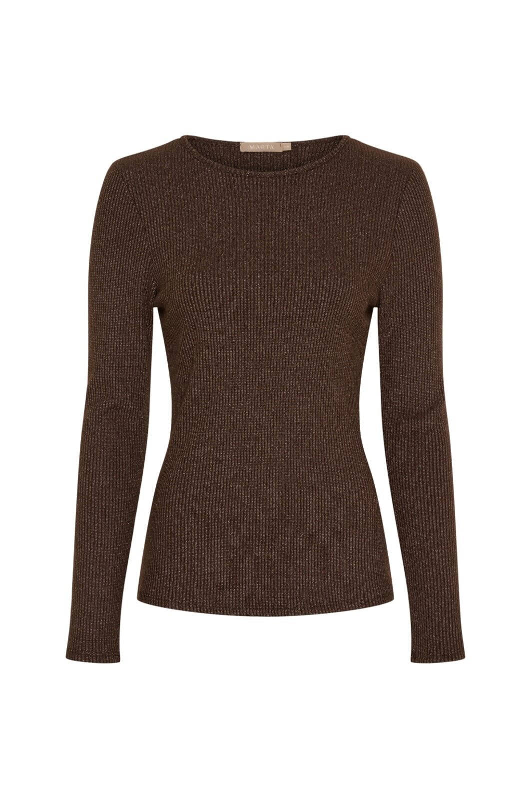 Bruin langärmelig topje van Marta Du Chateau met een geribde structuur. De top heeft een aangesloten pasvorm en een ronde halslijn.