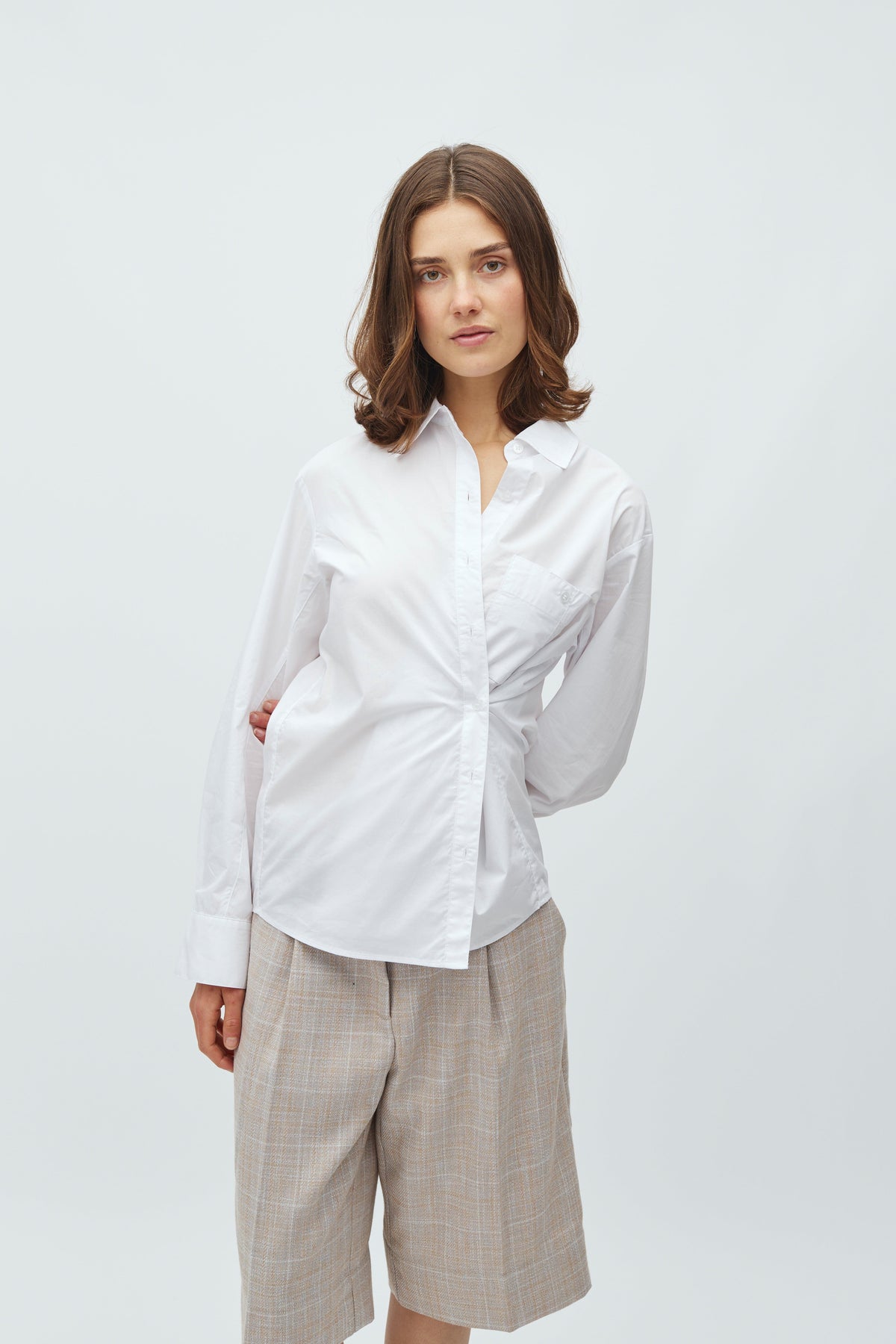 Wit overhemd van MbyM, gemaakt van 100% katoen. Het overhemd heeft lange mouwen, een overhemdkraag en een knoopsluiting, en is geschikt voor zowel formele als casual gelegenheden.