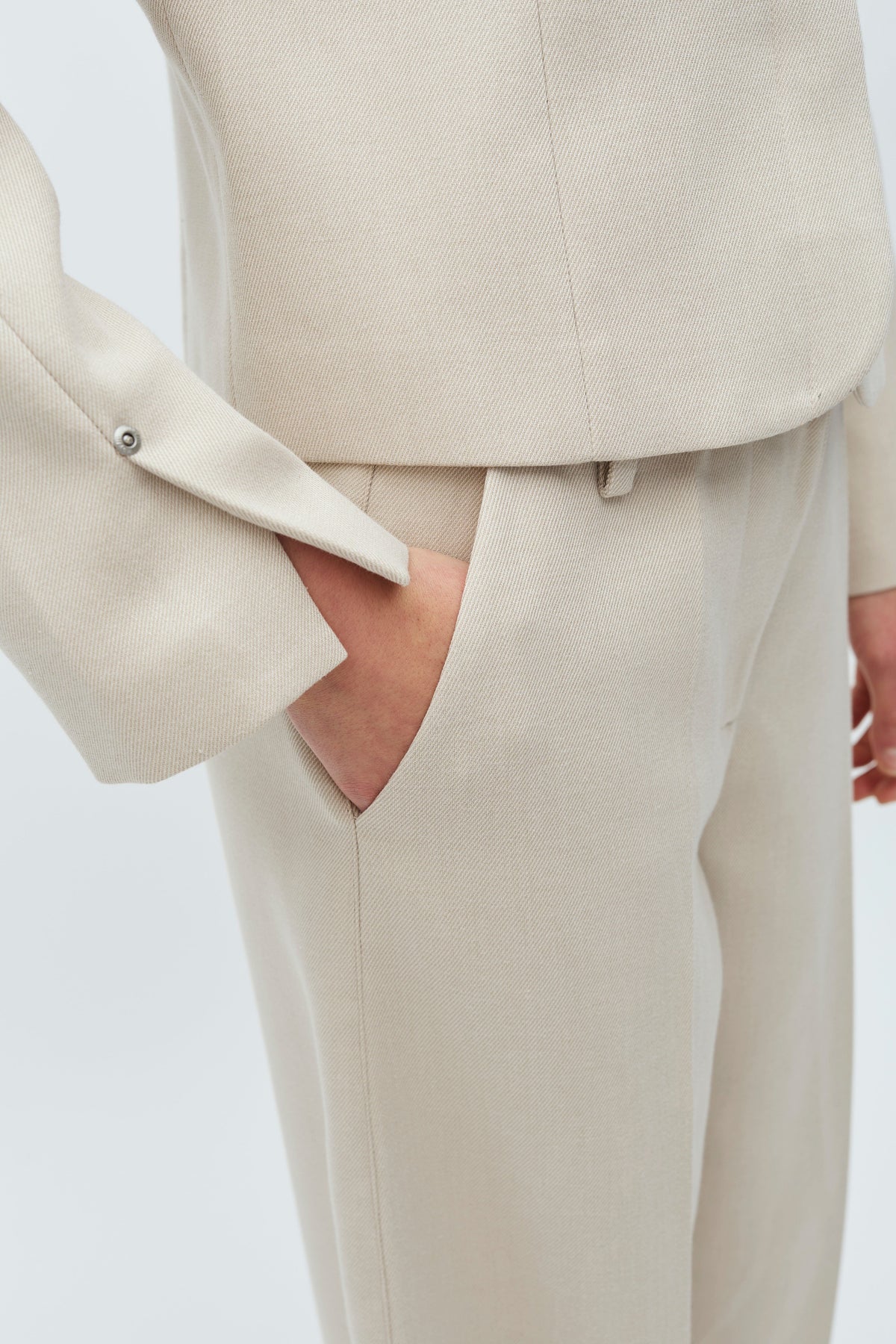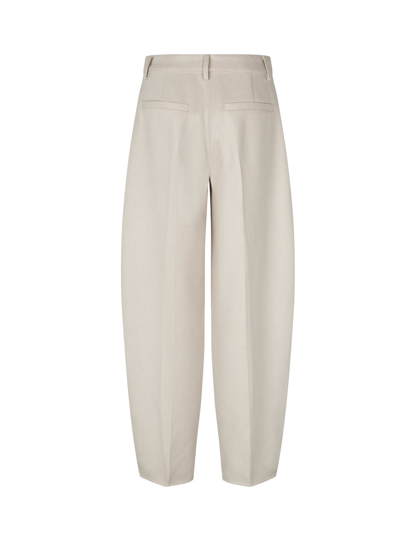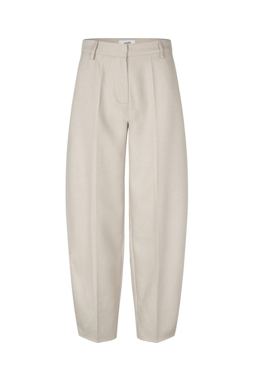 Losse broek van MbyM in een bruin gemêleerde kleur. De broek is gemaakt van 70% polyester en 30% viscose, met een hoge taille en enkellengte.