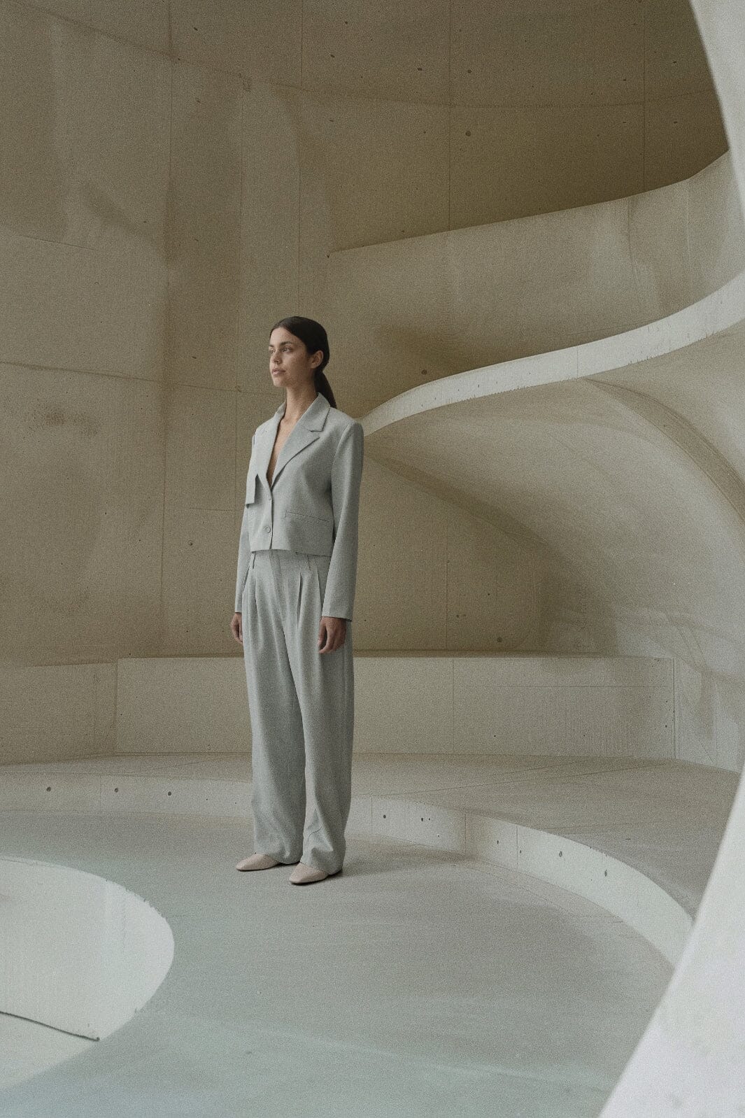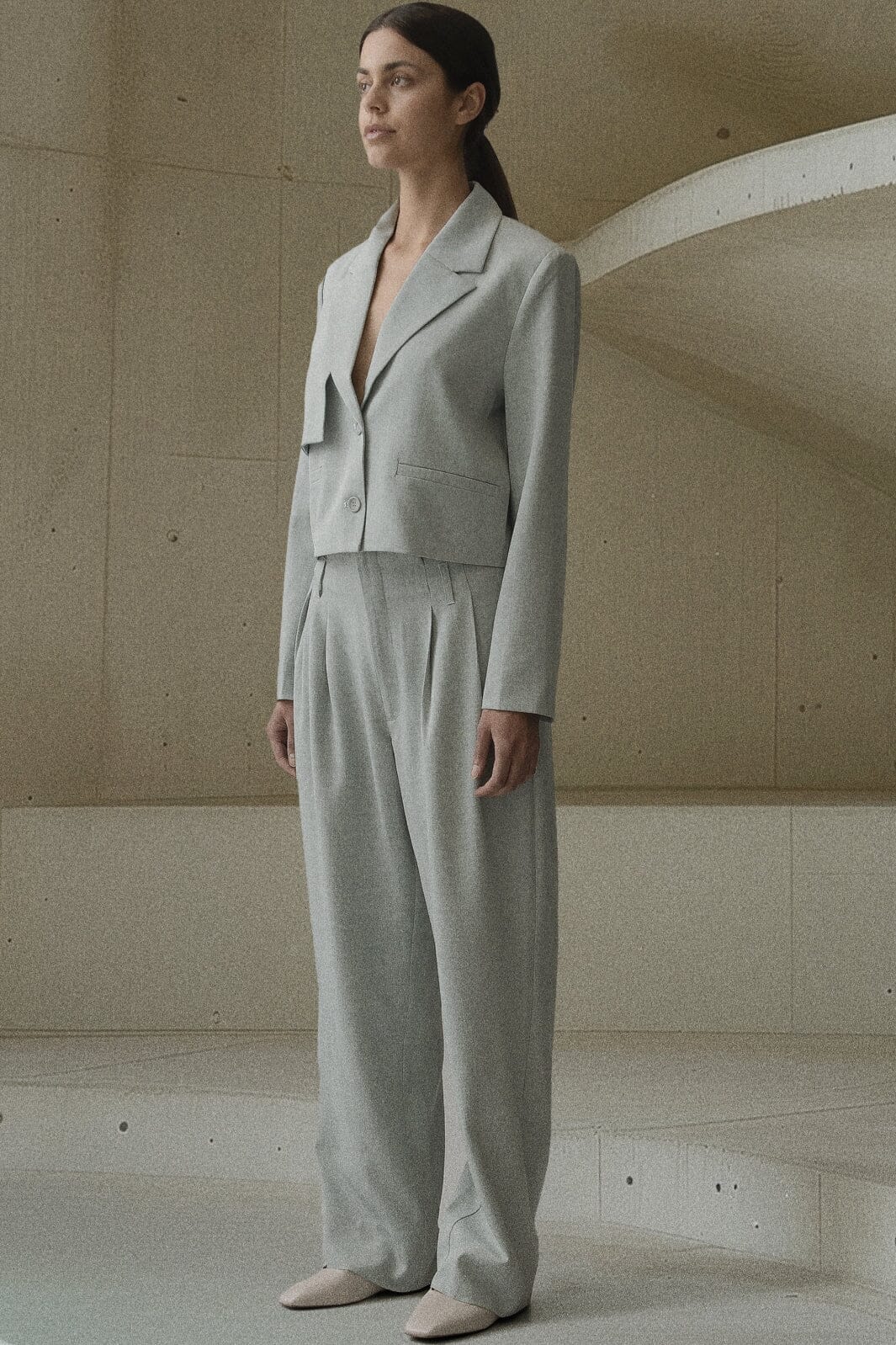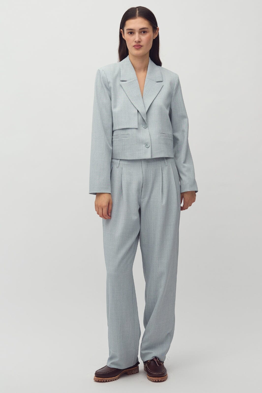 Lichtgrijze broeken van MbyM in volle lengte met regular fit. De broeken hebben een klassieke snit met rechte benen en een normale taille. Ze kunnen worden gestyled voor zowel formele als casual gelegenheden.