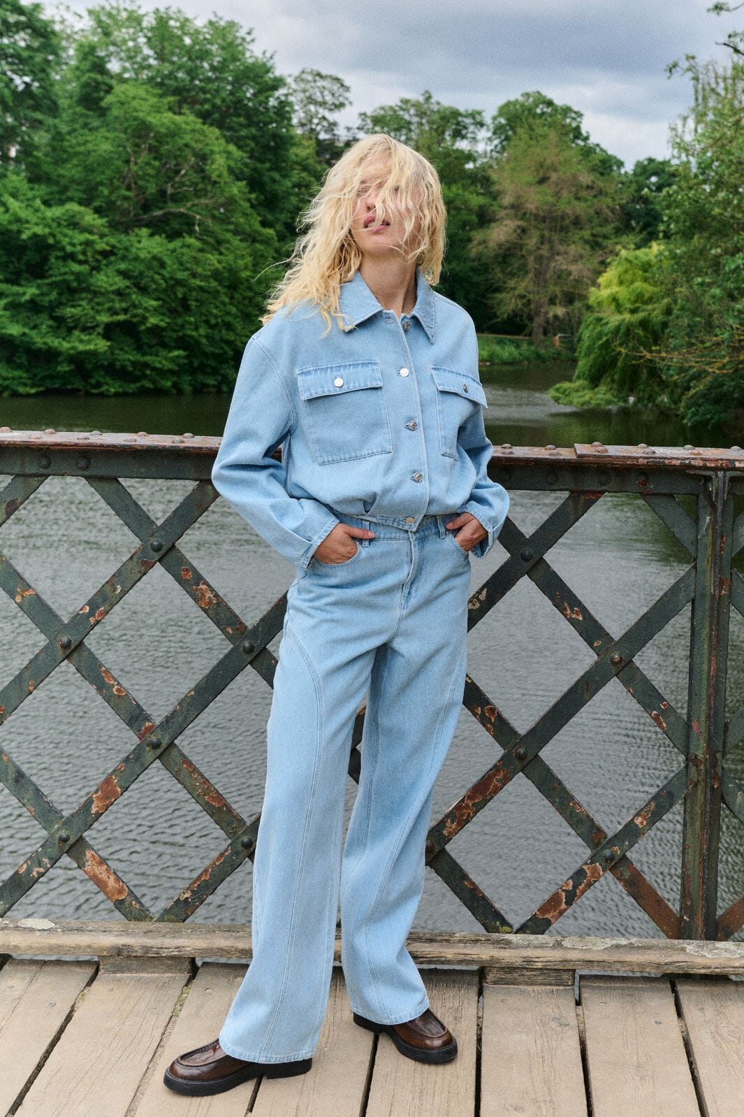 Jeans van MbyM in lichtblauw met een losse pasvorm. De jeans hebben een hoge taille en een lengte tot op de grond.