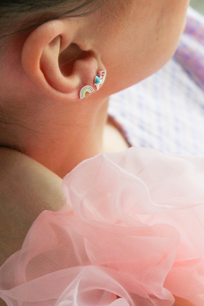 - De oorbel: ca. 0,8 x 0,5 cm