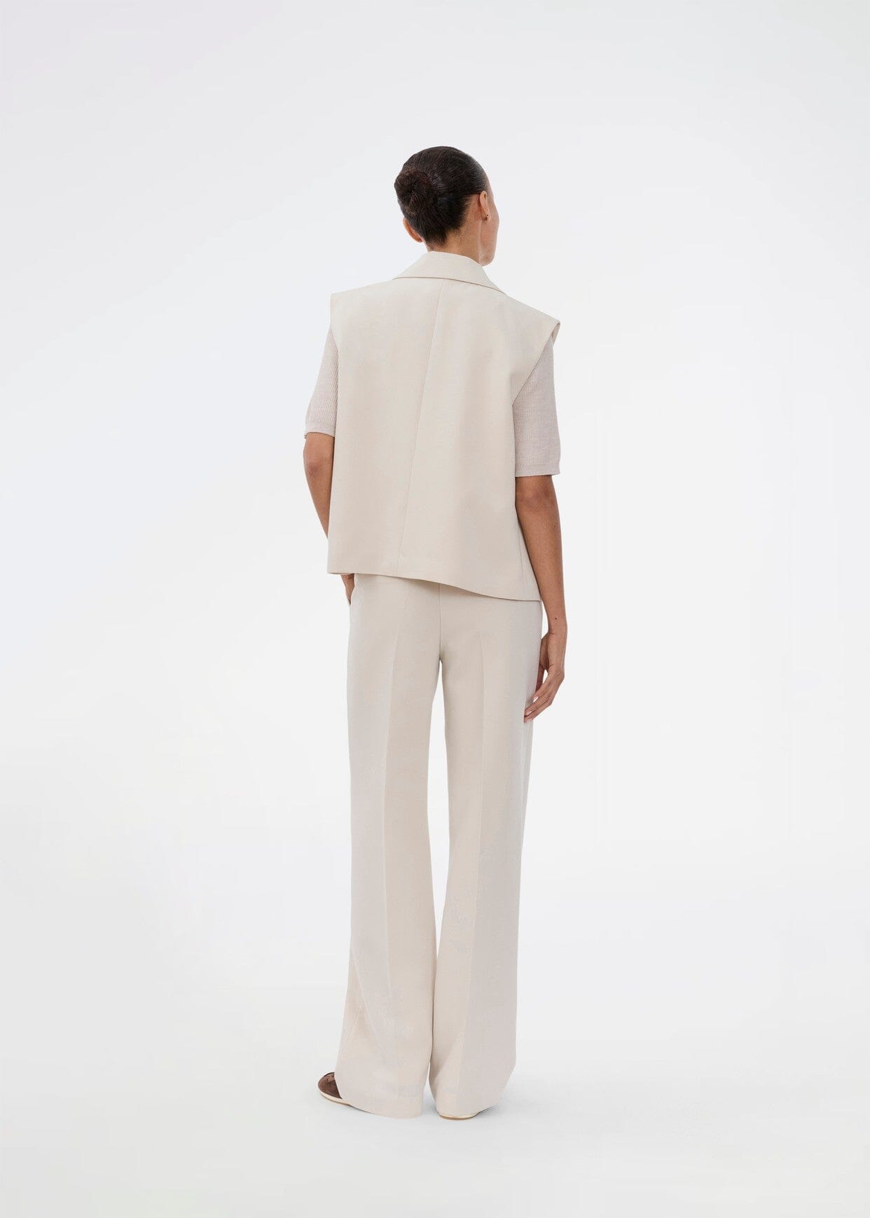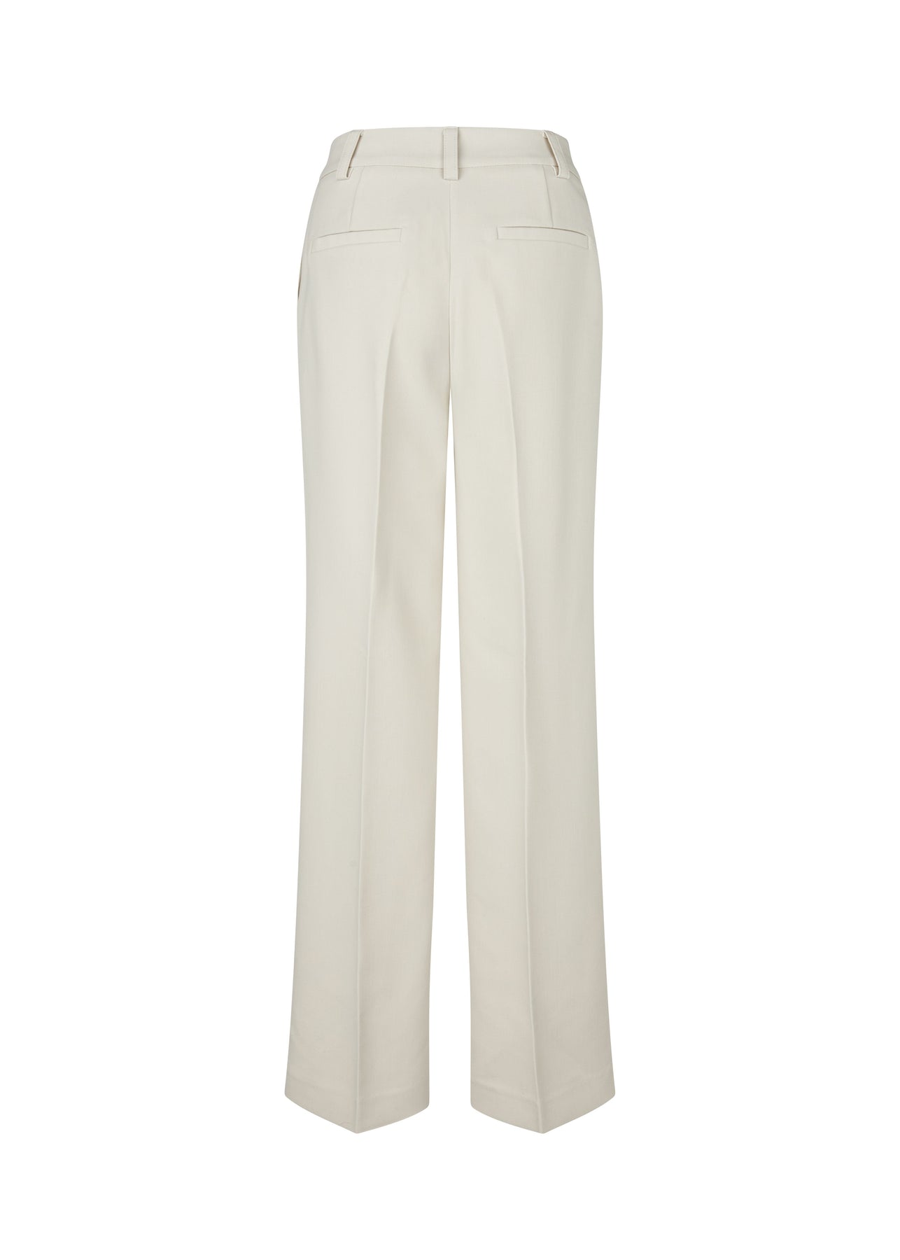 Broek van Modström in een lichte offwhite kleur. De broek heeft wijde pijpen met vouwen en een losse pasvorm.