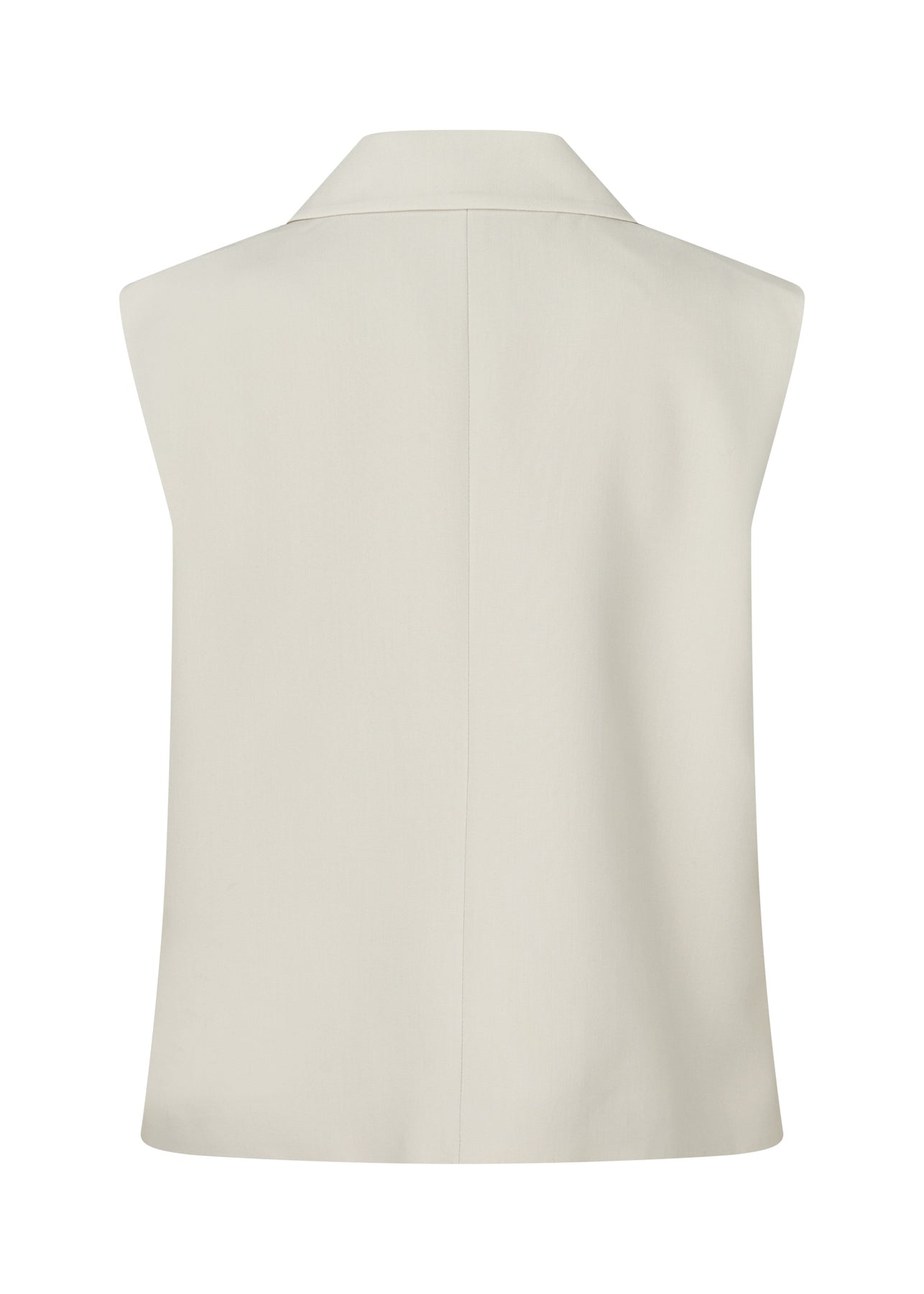 Mouwloos gilet van Modström in een offwhite tint. Het gilet heeft een klassieke kraag en sluit aan de voorkant met knopen.