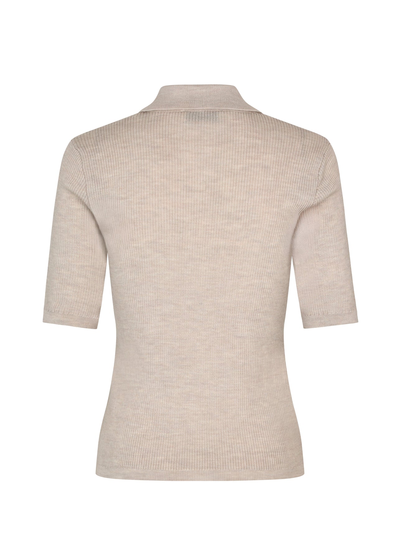 Kortmouwse polo van Modström in beige wol. De polo heeft een slim fit en een geribde structuur.