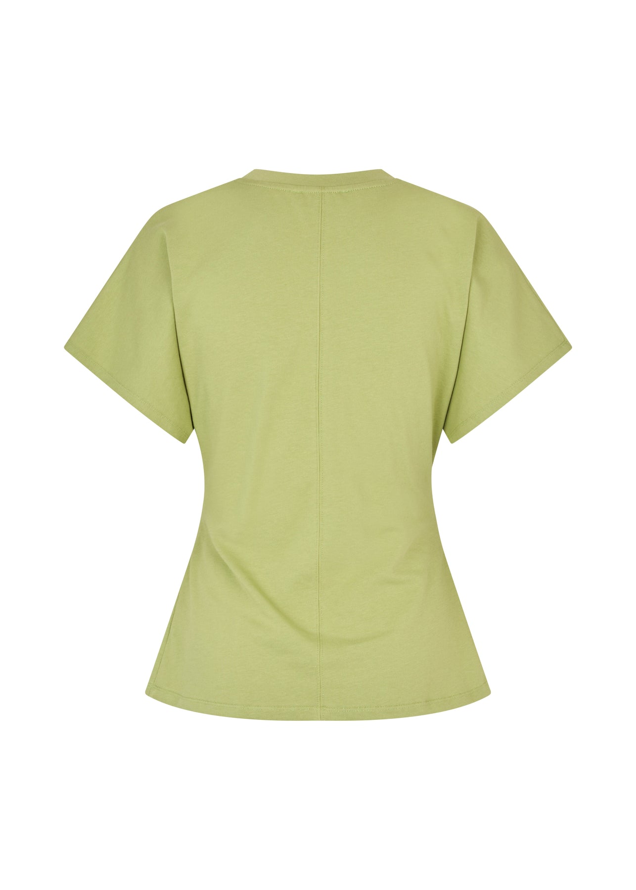 Lichtgroen T-shirt van Modström met decoratieve stiksels en plooidetails. Het T-shirt heeft een getailleerde pasvorm en korte mouwen.