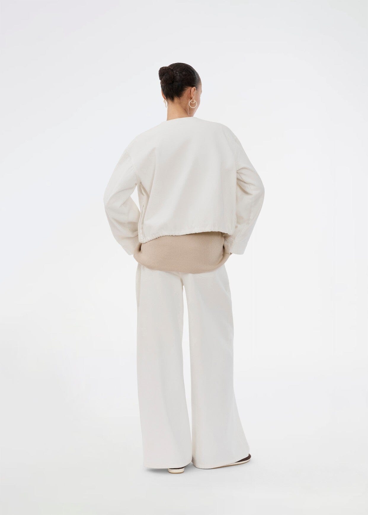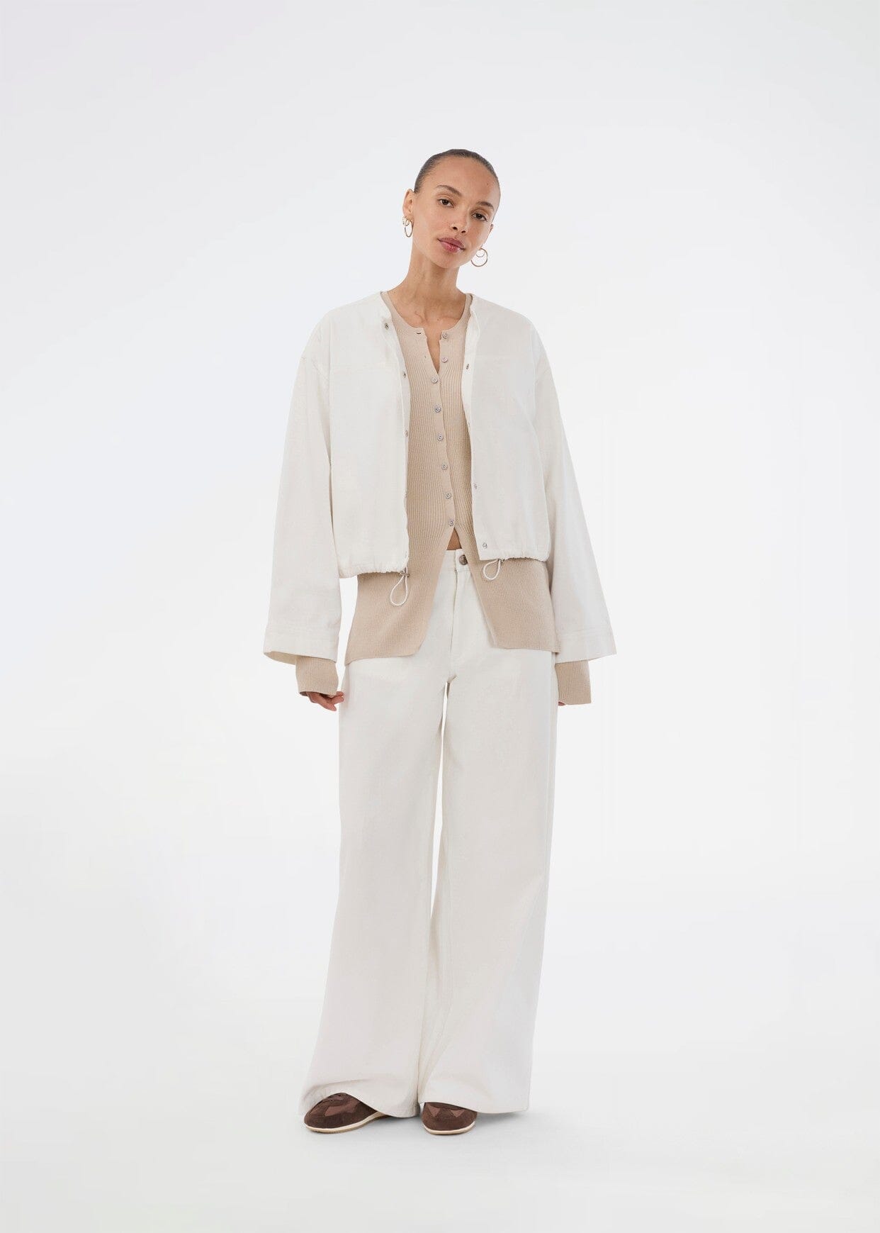 Wijde broek van Modström in een lichte crèmekleur. De broek is gemaakt van 100% katoen en heeft een hoge taille met elastiek.