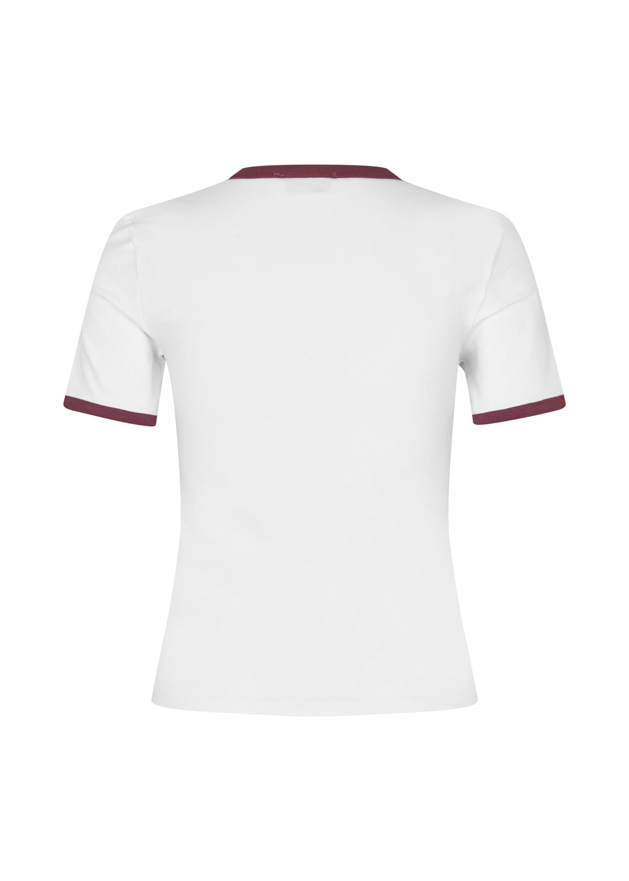 Wit T-shirt van Modström met contrasterende boorden bij de kraag en mouwen. Het logo is aan de voorkant geplaatst in een ovale applicatie.