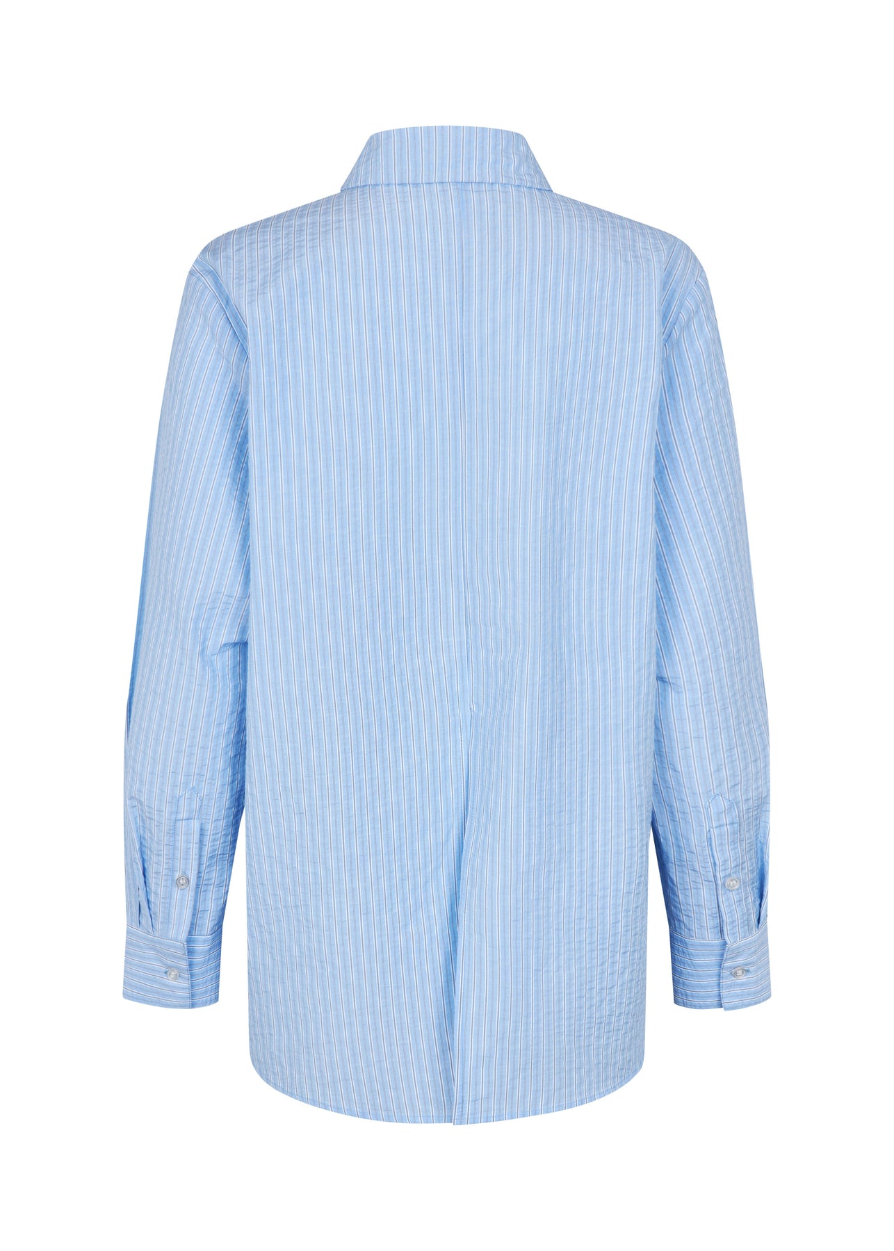 Gestreept overhemd van Modström in blauw en wit. Het overhemd heeft een oversized pasvorm en lange mouwen met manchetten.