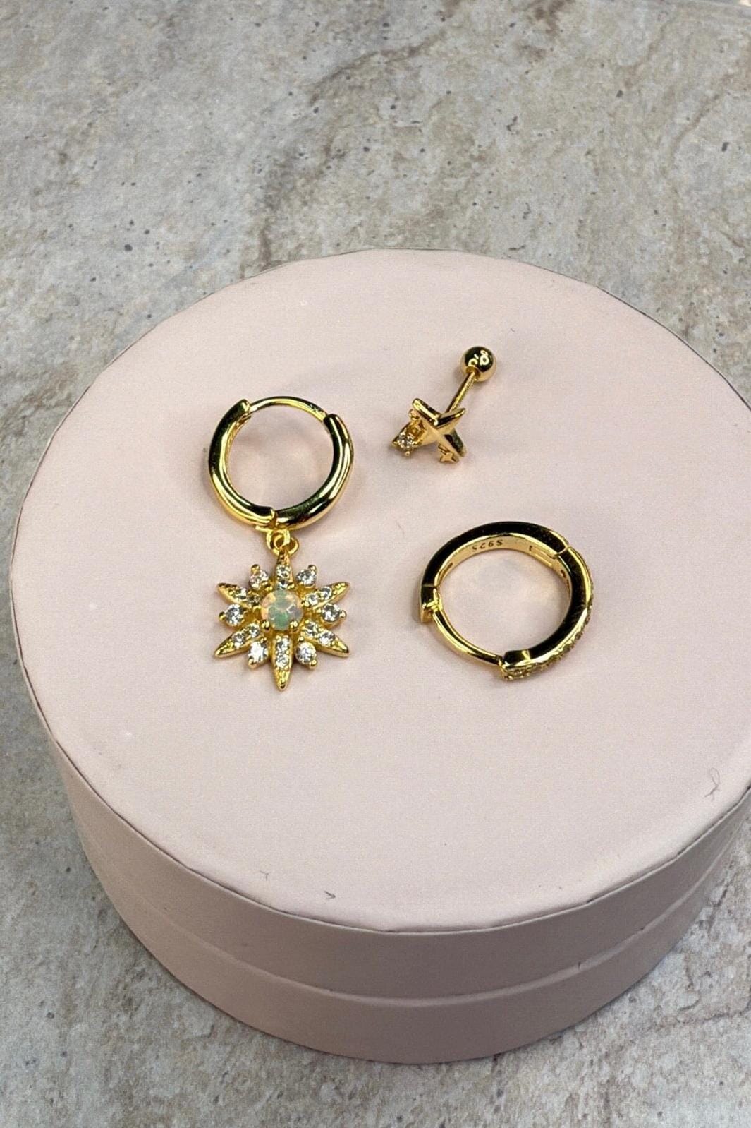 Oorbellen van Molly&My Jewellery met een vergulde afwerking. De set bevat twee paar met stervormige hangers en ingezette stenen.