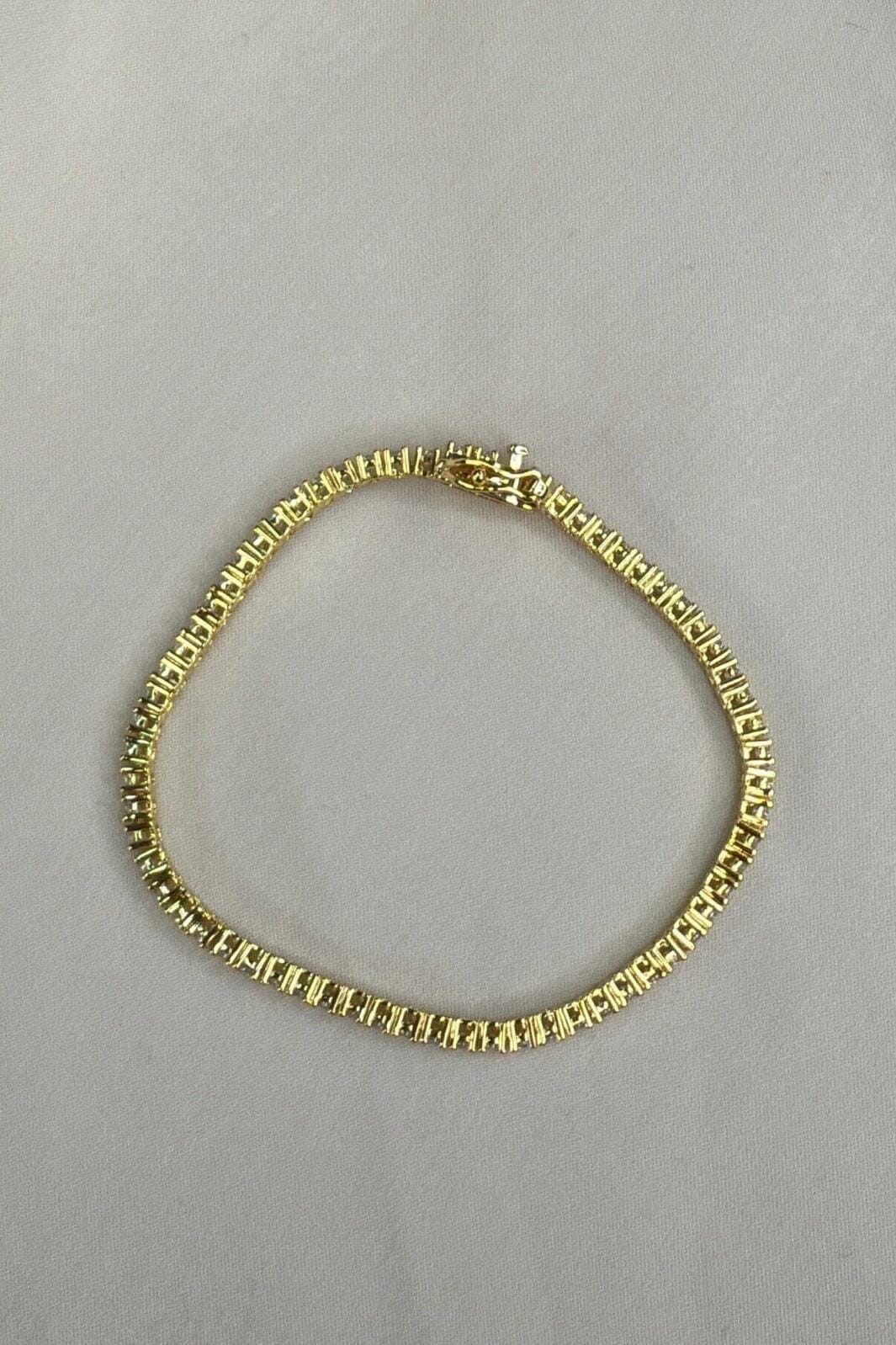 Vergulde armband van Molly&My Jewellery met heldere stenen over de volledige lengte. De armband heeft een goudkleurig oppervlak en een sluitsysteem.
