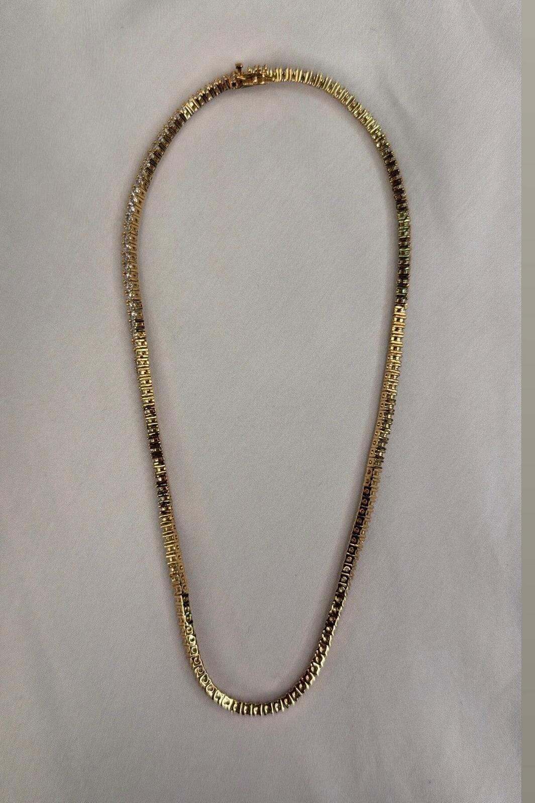 Verguld sieradenset van Molly&My Jewellery met heldere stenen over de volledige lengte. De set bestaat uit een ketting en een armband met een goudkleurige afwerking.