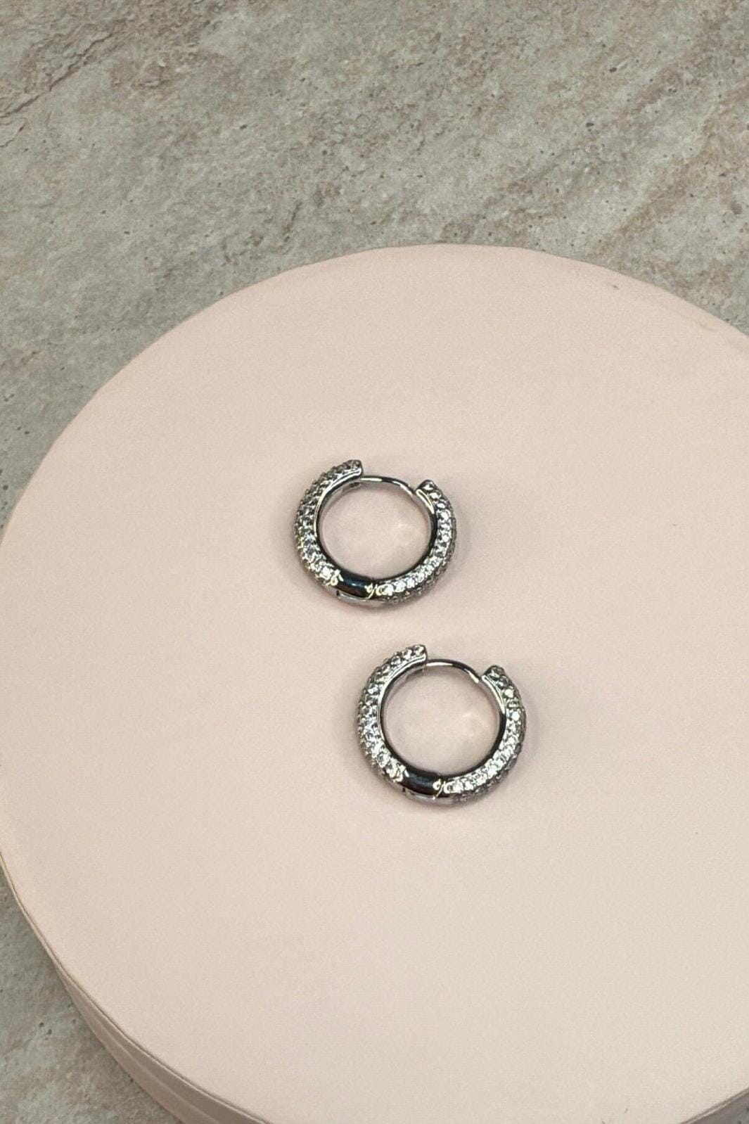 Ronde oorbellen van Molly&My Jewellery in een zilverkleurige tint. De oorbellen zijn rondom versierd met kleine steentjes.
