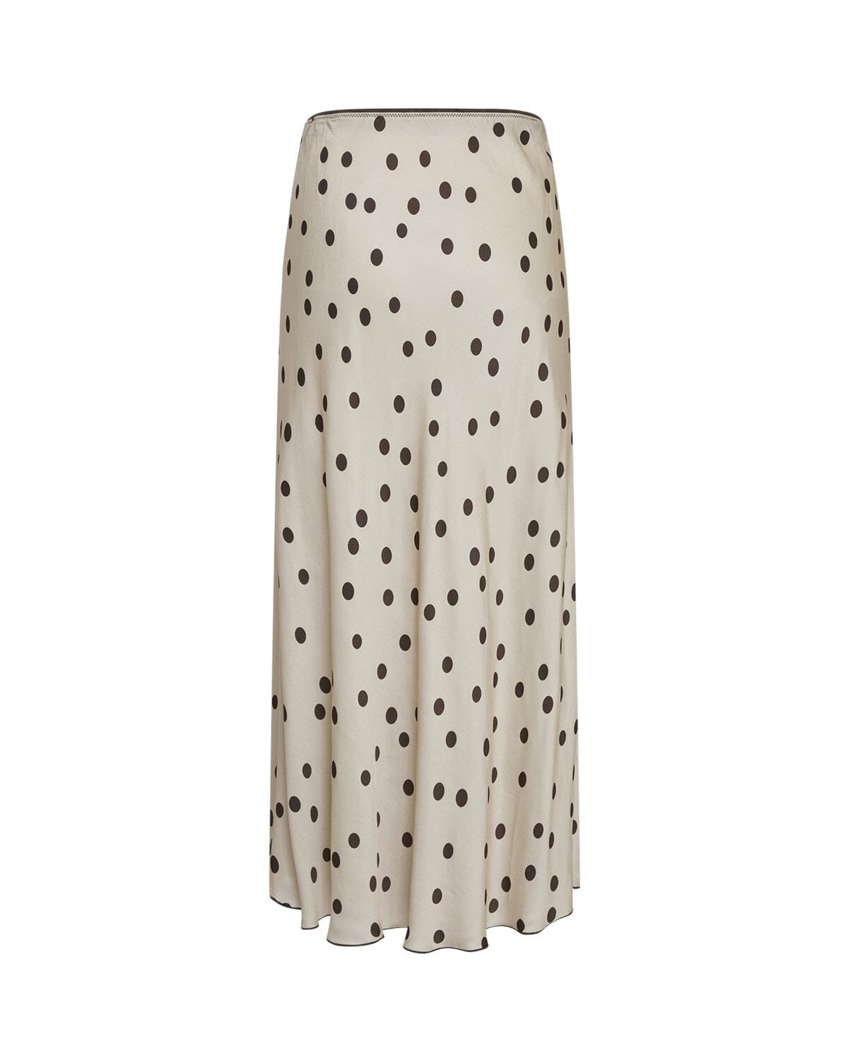 Lange rok van MSCH Copenhagen in beige viscose met donkere stippen. De rok heeft een vloeiende pasvorm en een elastische taille.