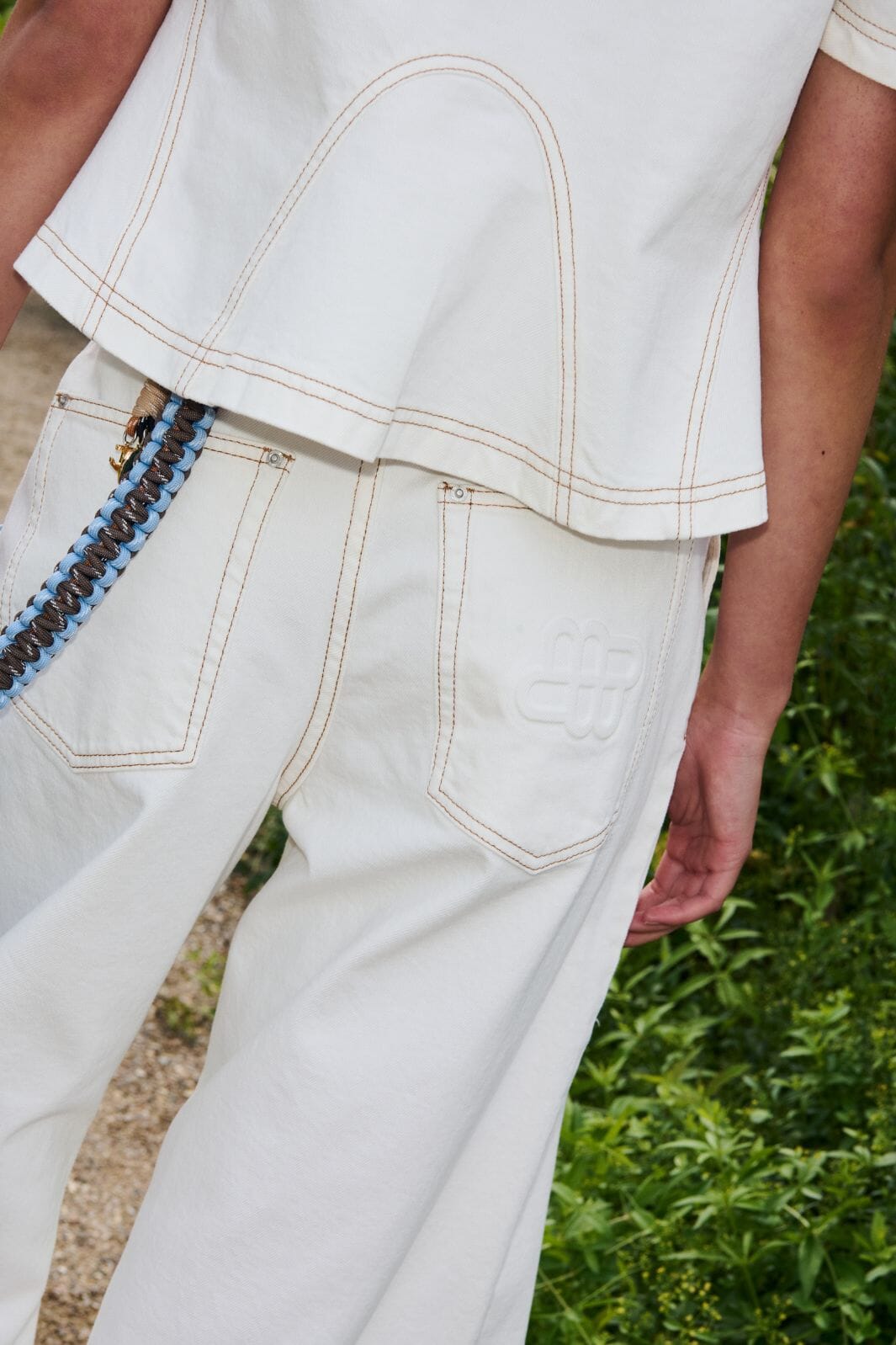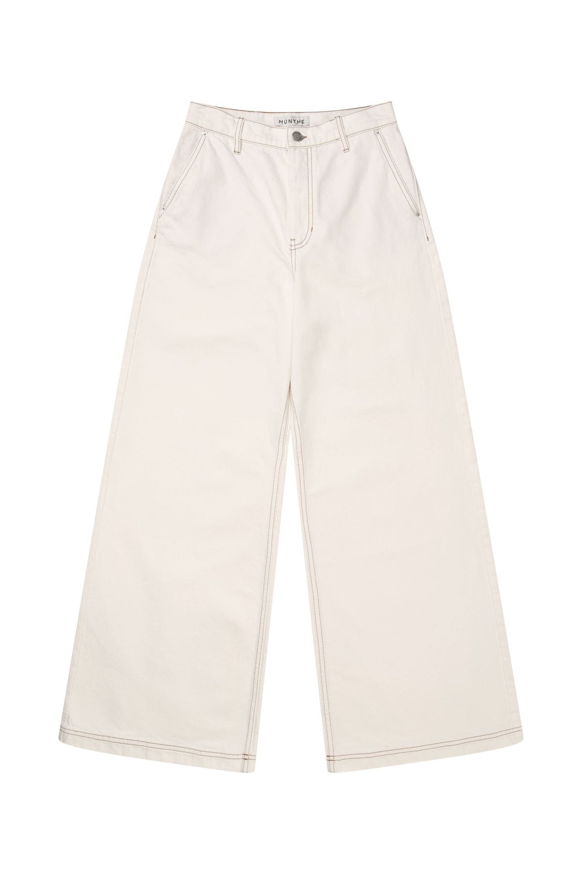 Broek van Munthe in een lichte ivoorkleur. Hij is gemaakt van 99% biologische katoen met 1% elastaan.